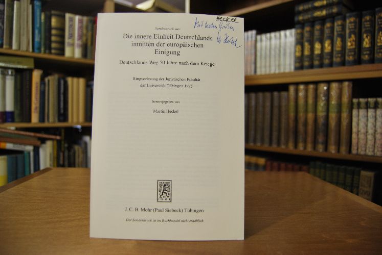 Beschreibung Mit handschriftlicher Widmung von Martin Heckel auf dem Titelblatt. "Martin Heckel (* 22. Mai 1929 in Bonn) ist Professor des Staats- und Kirchenrechts. Martin Heckel studierte in München Rechtswissenschaft als Stipendiat der bayrischen Maximilianeums-Stiftung und legte dort die Erste und Zweite juristische Staatsprüfung ab. Nach der Promotion (1955) und Habilitation (1960) in Heidelberg wurde er 1960 an die Juristische Fakultät der Universität Tübingen als ordentlicher Professor für öffentliches Recht und Kirchenrecht berufen. Seit 1980 ist er kooptiertes Mitglied der Evang.-theolog. Fakultät Tübingen. Berufungen an die Juristischen Fakultäten in Marburg und Erlangen (1960), München (1968 und 1977), Bonn (1971) und an die Evangelisch-theologische Fakultät in Tübingen (1986) lehnte er ab. Seit 1973 ist er Mitglied der Heidelberger Akademie der Wissenschaften, seit 1985 Mitglied der Historischen Kommission bei der Bayerischen Akademie der Wissenschaften, seit 1996 korrespondierendes Mitglied der Bayerischen Akademie der Wissenschaften. 1997 verlieh ihm die Evang.-Theol. Fakultät München den Grad des Ehrendoktors der Theologie. 2004 wurden ihm das Bundesverdienstkreuz 1. Klasse und die Johannes-Brenz-Medaille der Württemb. Evang. Landeskirche in Silber verliehen. 1999 erschien eine Festschrift zu seinem 70. Geburtstag im Tübinger Verlag Mohr Siebeck Verlag. 1961–1977 war er Mitglied der Württembergischen Evangelischen Landessynode, 1970–1973 Mitglied des Rates und der Synode der EKD, 1976–1997 Präsident des Schiedsgerichtshofs der EKD, 1988–1990 Vorsitzender der Deutschen Staatsrechtslehrervereinigung, 1972–2000 Mitglied des Vorstandes des Vereins für Reformationsgeschichte, 1968–1998 Mitherausgeber der Kanonistischen Abteilung der Zeitschrift der Savigny-Stiftung für Rechtsgeschichte (ZRG KA) und der Reihe „Forschungen zur kirchlichen Rechtsgeschichte und zum Kirchenrecht“. Seit 1968 ist er geschäftsführender Herausgeber der Reihe „Jus Ecclesiasticum. Beiträge zum evangelischen Kirchenrecht und zum Staatskirchenrecht“ (JE). Das wissenschaftliche Werk Heckels umfasst 13 Monographien (M) und 6 Bände „Gesammelte Schriften. Staat – Kirche – Recht – Geschichte“ (GS, Band I/II 1989, Band III/IV 1997, Band V 2004, Bd. VI 2013; Jus Ecclesiasticum Bd. 38, 58, 73, 100) mit ausgewählten Abhandlungen, Festschriftbeiträgen und Rezensionsaufsätzen (A). In interdisziplinärer Ausrichtung widmen sie sich besonders den historischen Ursprüngen und aktuellen Wechselwirkungen zwischen der Jurisprudenz, Geschichtswissenschaft und Theologie, um die vielfältigen und weitreichenden Verbindungen zwischen der Rechtsgeschichte und der Rechtsdogmatik, dem staatlichen und dem kirchlichen Recht, der Praxis und der Theorie aufzuzeigen. Schwerpunktmäßig behandeln sie einerseits die enormen historischen Auswirkungen der Theologie Luthers auf das katholische und evangelische Kirchenrecht und auf das Reichskirchenrecht des Alten Reichs, welches schon im Konfessionellen Zeitalter in Deutschland zu einer zukunftsträchtigen, in Europa einzigartigen Koexistenzordnung religiöser Freiheit und Gleichheit der großen Religionsgemeinschaften führte. Andererseits suchen sie das geltende deutsche Staatskirchenrecht und Kulturverfassungsrecht und das evangelische Kirchenrecht aus ihren historischen Ursprüngen, geistigen Grundlagen und modernen Geltungsbedingungen im Gesamtzusammenhang des freiheitlich-demokratischen Verfassungsrechts zu erklären. Die Arbeiten zur Verfassunggebung und Verfassungsänderung bieten eine differenzierte verfassungstheoretische Analyse der Wiedervereinigung Deutschlands 1990. In ihnen wurde das Modell zur Einigung der EKD und des Kirchenbundes der DDR entwickelt. Seit den richtungweisenden Vorträgen und Diskussionen auf der Frankfurter Staatsrechtslehrertagung 1967 haben diese Studien maßgeblich an der Entwicklung und Begründung eines modernen Staatskirchenrechts aus den Grundrechtsgarantien liberaler Freiheit und Gleichheit mitgewirkt, das den religiösen Kräften und Traditionen eine eigenständige, bekenntnisgemäße Entfaltung im pluralistischen Rechtssystem der Gegenwart ohne Privilegierung und ohne Diskriminierung durch dominante konfessionelle oder ideologische Kräfte ermöglicht und ihre große kulturstaatliche und sozialstaatliche Wirksamkeit gewährleistet. Dadurch wurde die ältere, auf die institutionellen Beziehungen des Staates und der Religionsgemeinschaften konzentrierte Lehre des Staatskirchenrecht überwunden, die nach der bis dahin herrschenden „Koordinationstheorie“ noch stark von einer einheitlichen christlichen Gesellschaft und vom nachwirkenden Leitbild einer Dyarchie der geistlichen und staatlichen Gewalt im „christlichen Staat“ ausging." (Wikipedia)