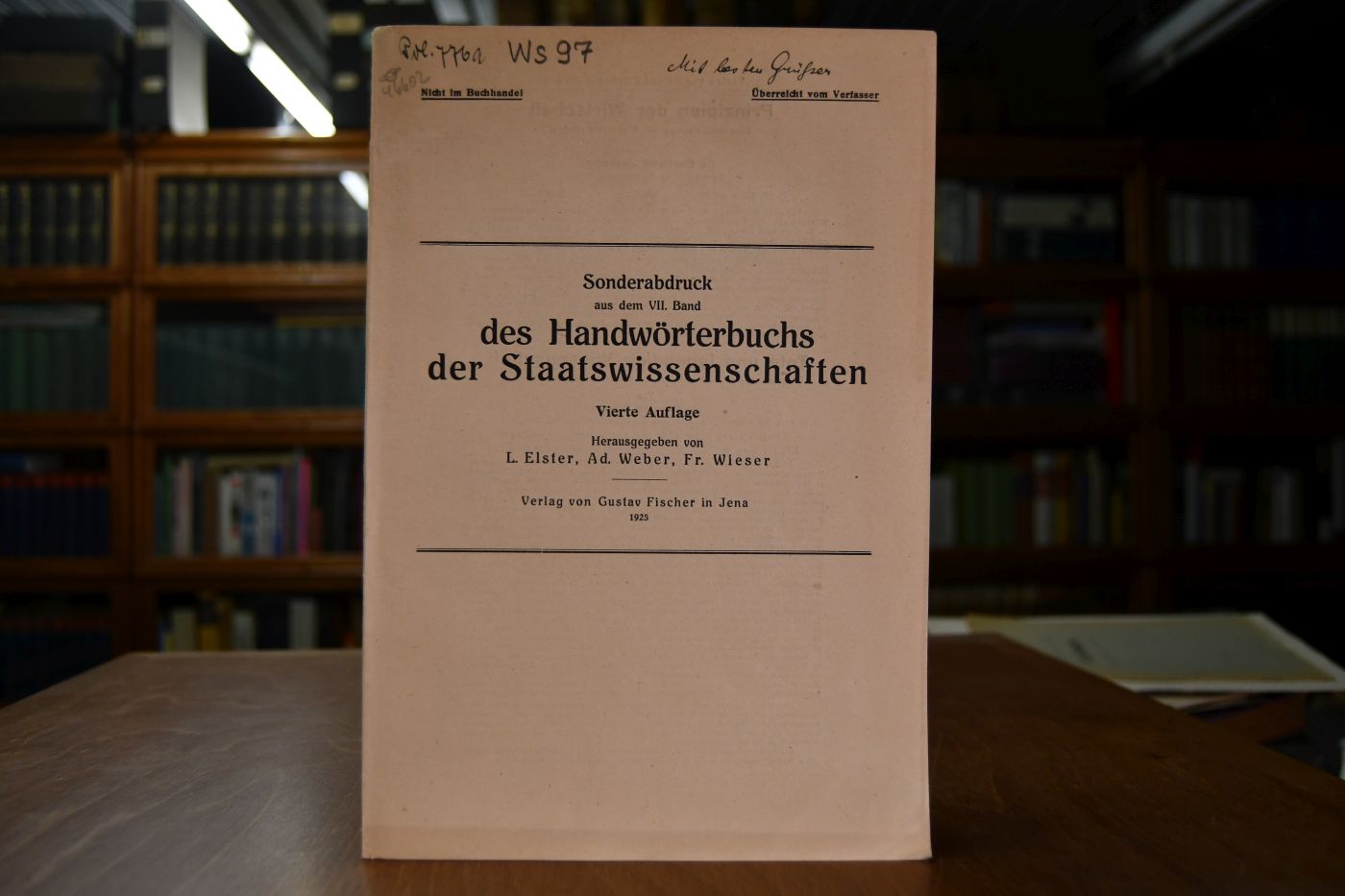 Sonderdruck aus: "Handwörterbuch der Staatswissenschaften" VII. Band