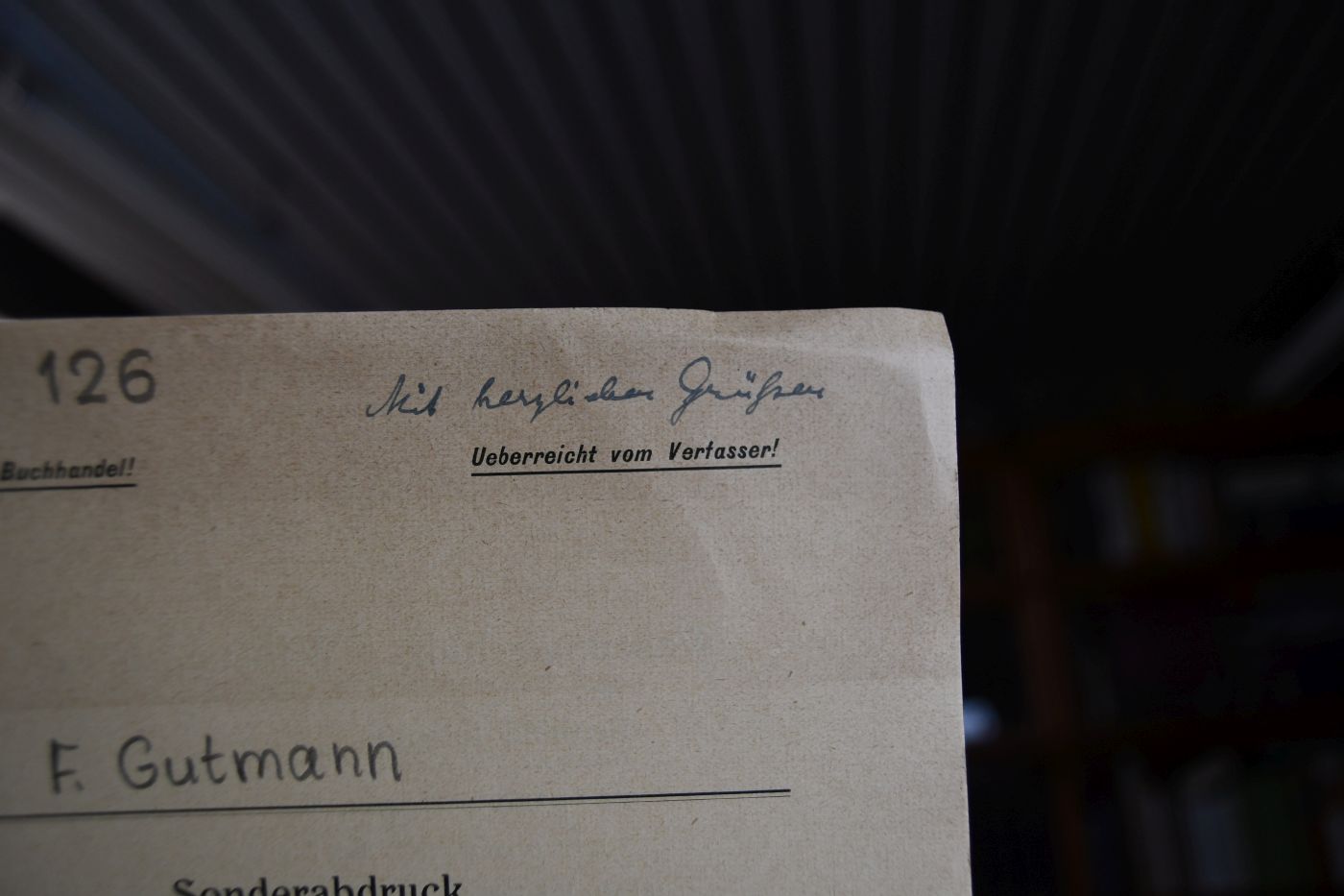 Beschreibung Einband berieben, bestoßen und mit Einrissen. Eselsohrig. Handschriftliche Widmung von Franz Gutmann auf dem Vorderdeckel.