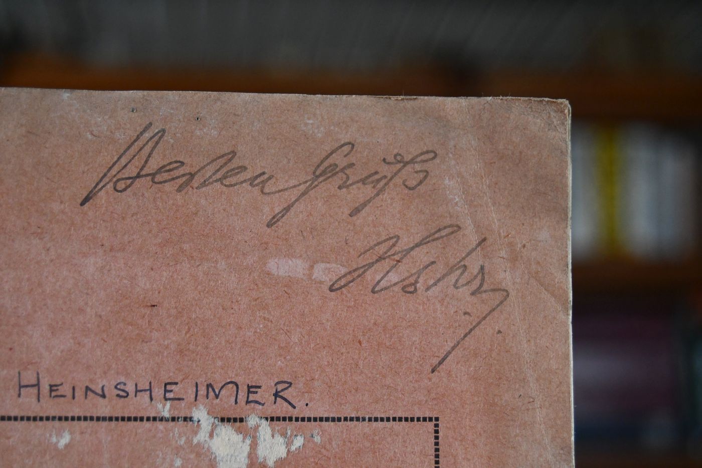 Beschreibung Einband berieben, bestoßen, angeschmutzt und fleckig. Durchgehend wellig und mit Randeinrissen. Durchgehend Spuren von Feuchtigkeitseinwirkung. Mit handschriftlicher Widmung von Karl Heinsheimer auf dem Vorderdeckel.
