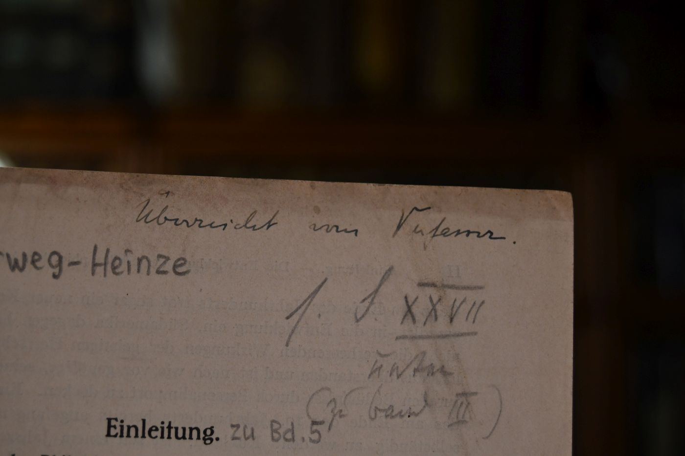 Beschreibung Berieben, bestoßen, angeschmutzt und mit Spuren korrodierter Heftklammern. Handschriftliche Widmung von Max Heinze auf dem Vorderdeckel.