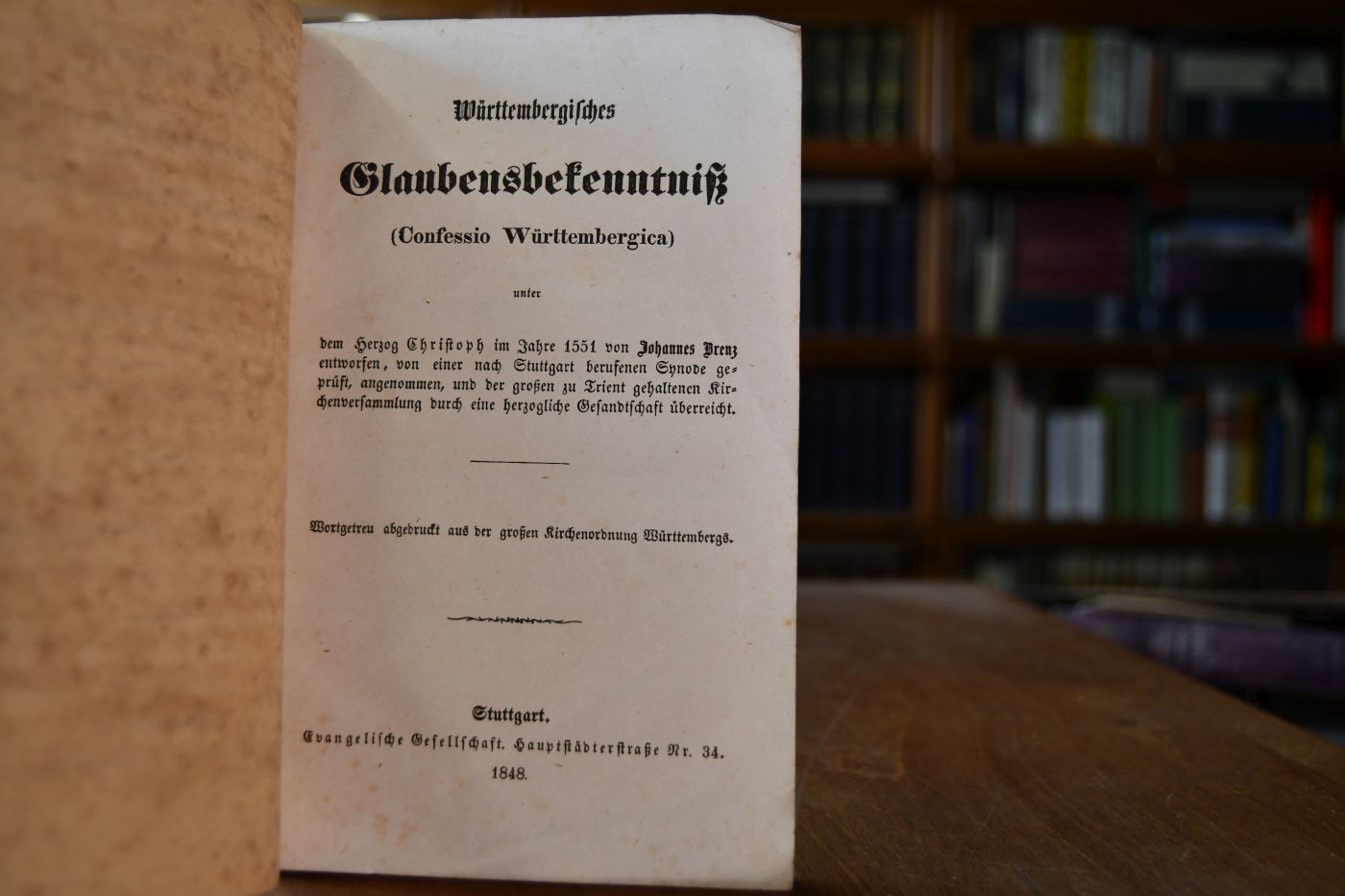 Württembergisches Glaubensbekenntniss (Confessio Württembergica) unter dem Herzog Christoph im Jahre 1551 von Johannes Brenz entworfen, von einer nach Stuttgart berufenen Synode geprüft, angenommen, und der großen in Trient gehaltenen Kirchenversammlung durch eine herzogliche Gesandtschaft überreicht.