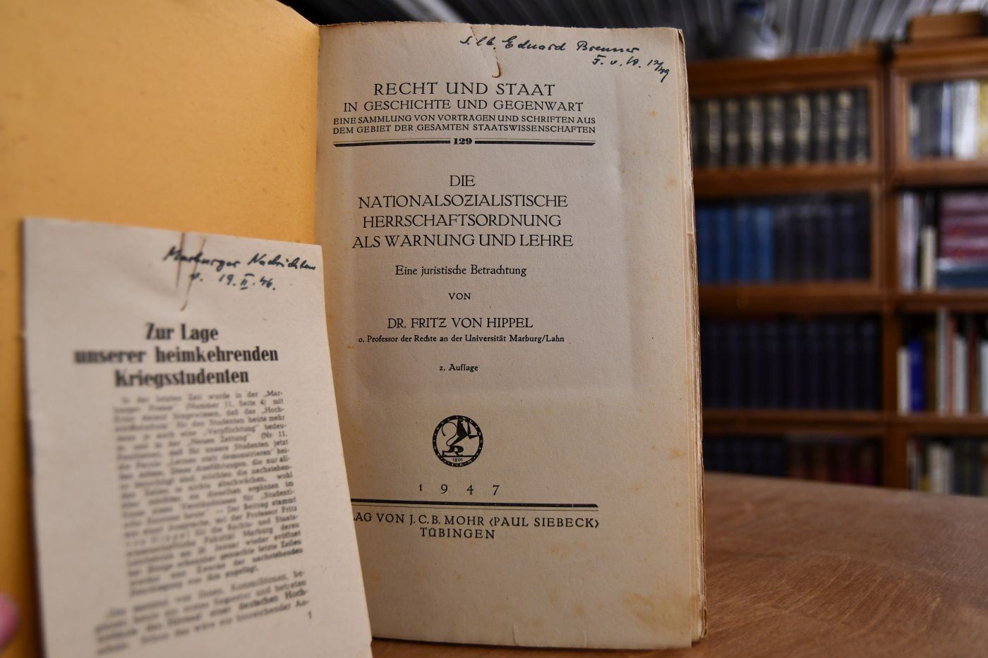 Beschreibung Einband berieben, bestoßen, fleckig, mit Einrissen. Schnitt etwas fleckig. Einige Bleistiftanstreichungen. Beiliegend eine von Fritz von Hippel handschriftlich bezeichneter Artikel der Marburger Nachrichten "Zur Lage unserer heimkehrenden Kriegsstudenten". Mit handschriftlicher Widmung von Fritz von Hippel an Eduard Brenner auf dem Titel.