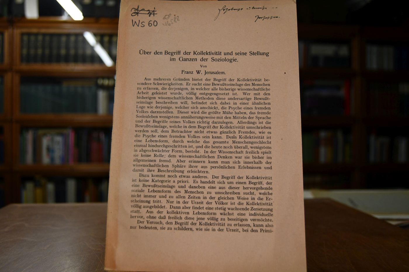 Über den Begriff der Kollektivität und seine Stellung im Ganzen der Soziologie.