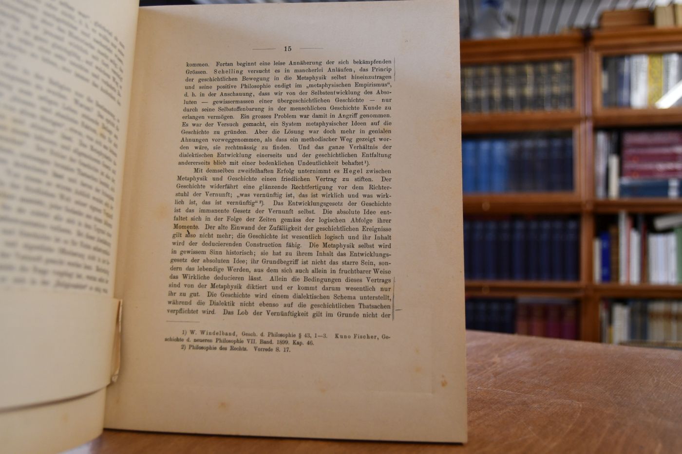 Beschreibung Schnitt fleckig. Durchgehend mit Bleistiftanstreichungen und 2 längeren Anmerkungen (wohl von Otto Kirn). Durchgehend fleckig. Mit handschriftlicher Widmung von Otto Kirn an seinen Lehrer und Kollegen auf dem fliegenden Vorsatz und einem handschriftlichen Besitzereintrag (H. Weiß?).