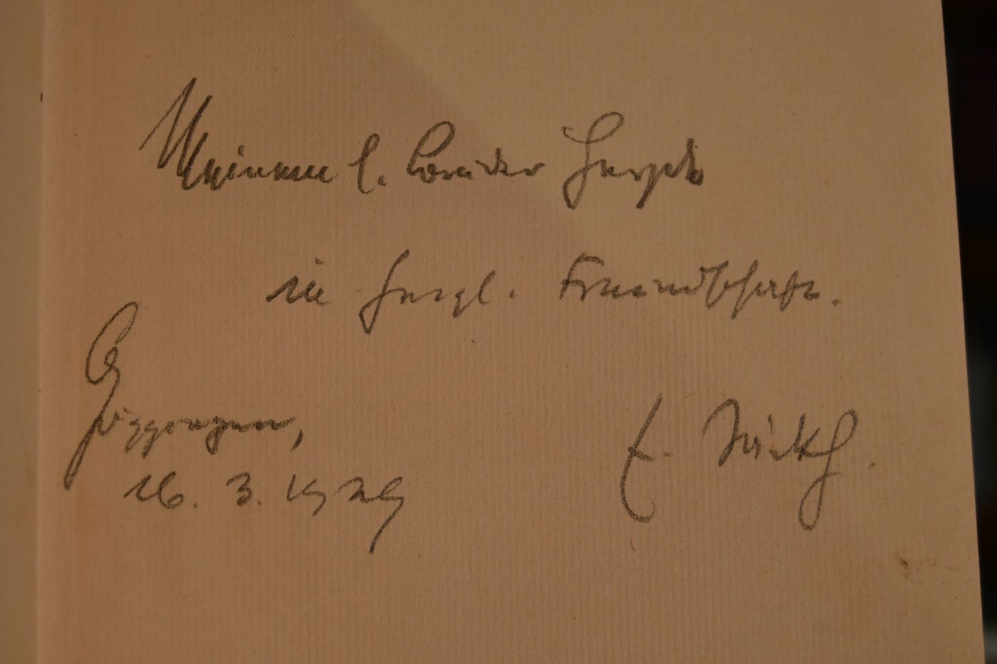 Beschreibung Einband berieben und angeschmutzt. Mit handschriftlicher Widmung von Eugen Jäckh vom 16.3.1929 an seinen Bruder Heyd(?) auf dem fliegenden Vorsatz.