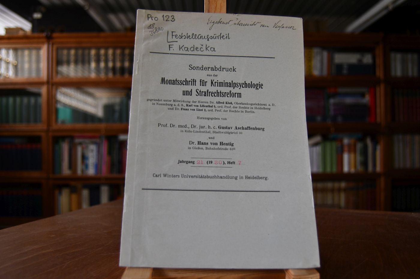 Sonderabdruck aus: Monatsschrift für Kriminalpsychologie und Strafrechtsreform, Jahrgang 21, Heft 7.