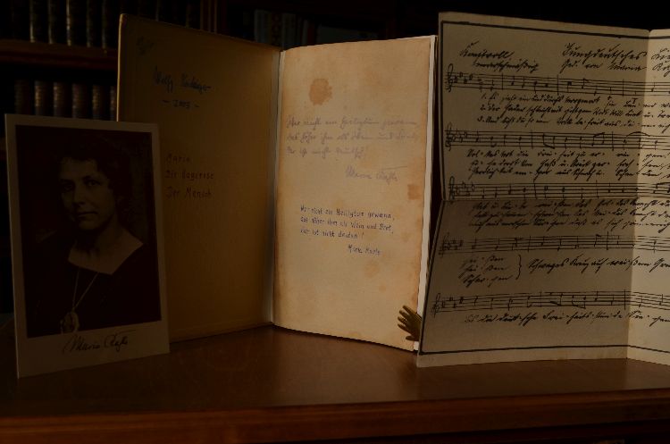 Beschreibung Einband berieben und bestoßen. Gelenke innen neuer verstärkt. Handschriftliche Besitzernotizen auf Innendeckel und fliegendem Vorsatz. Handschriftliche Widmung von Maria Kahle auf fliegendem Vorsatz. Papierbedingt gebräunt. Beiliegend eine Porträtkarte von maria Kahle vom Jungdeutschen Orden Bruderschaft Nordhausen und der Abdruck eines von Maria Kahle verfassten Liedes (Jungdeutsches Lied vertont von Hans Gansser. "Maria Kahle (* 3. August 1891 als Maria Keßler in Wesel; † 15. August 1975 in Olsberg/Sauerland) war eine völkische deutsche Schriftstellerin und Parteigängerin des NS-Regimes. " (Wikipedia)