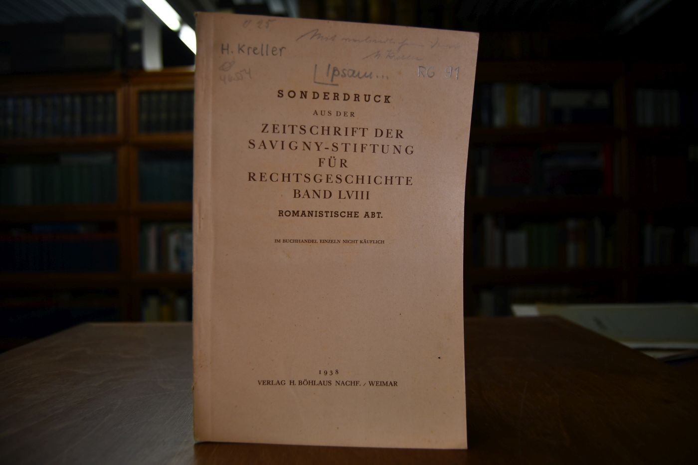 Sonderdruck aus: "Zeitschrift der Savigny-Stiftung für Rechtsgeschichte" Band LVIII, rom. Abt.