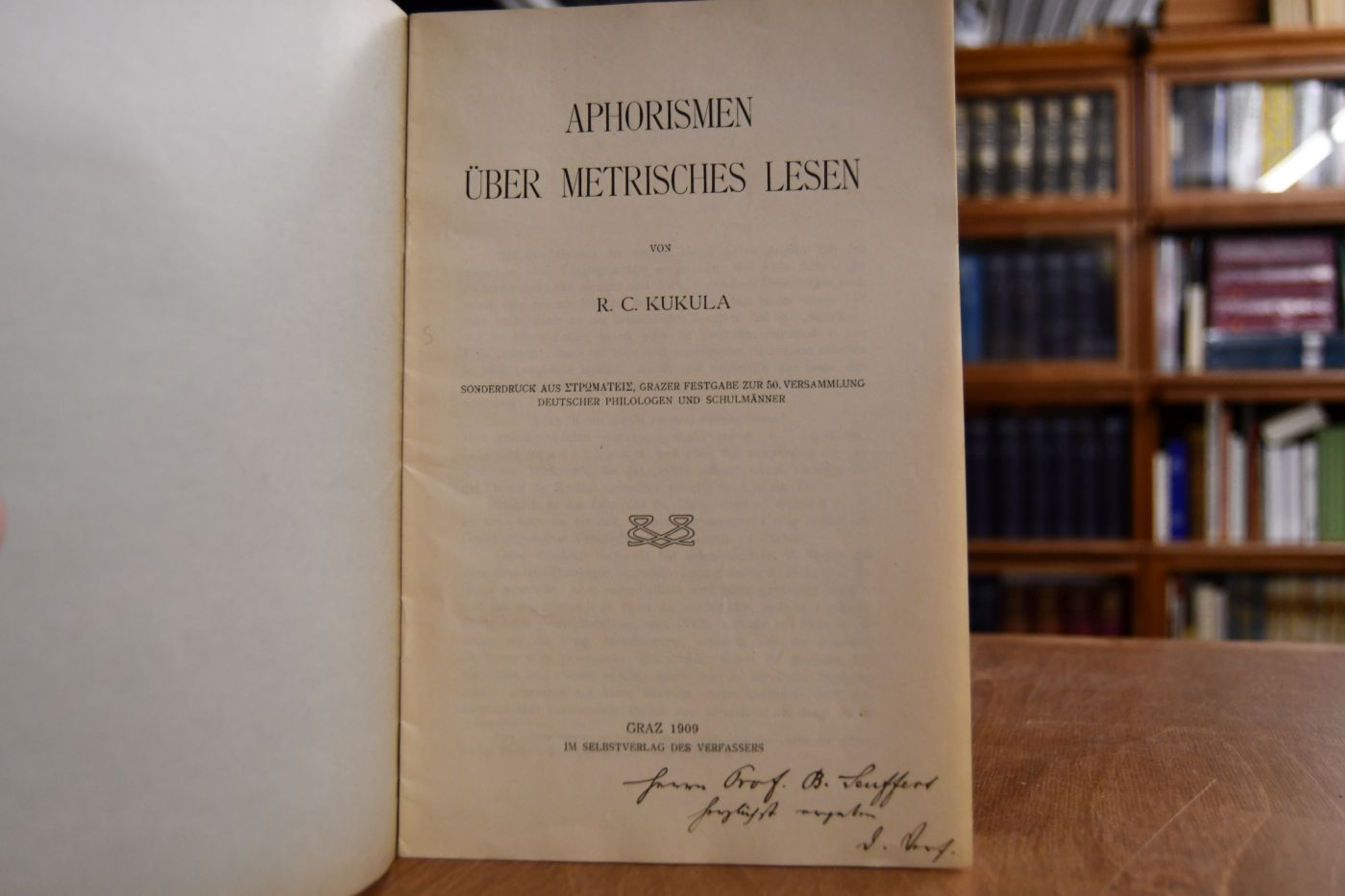 Beschreibung Einband berieben, bestoßen und gebräunt. Mit handschriftlicher Widmung von R.C. Kukula an B. Seuffert auf dem Titel.