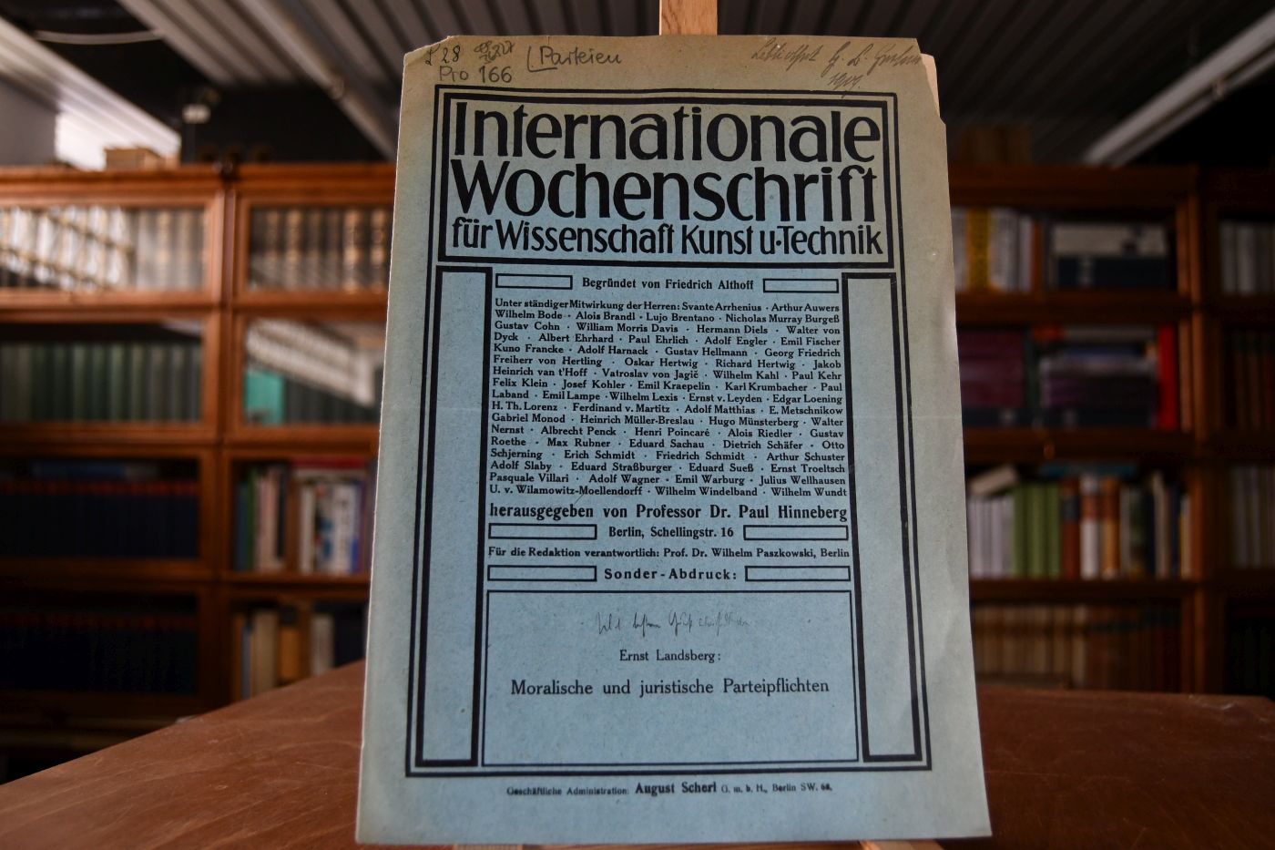 Sonder-Abdruck aus der Internationalen WOchenschrift für Wissenschaft, Kunst und Technik vom 3. April 1909.