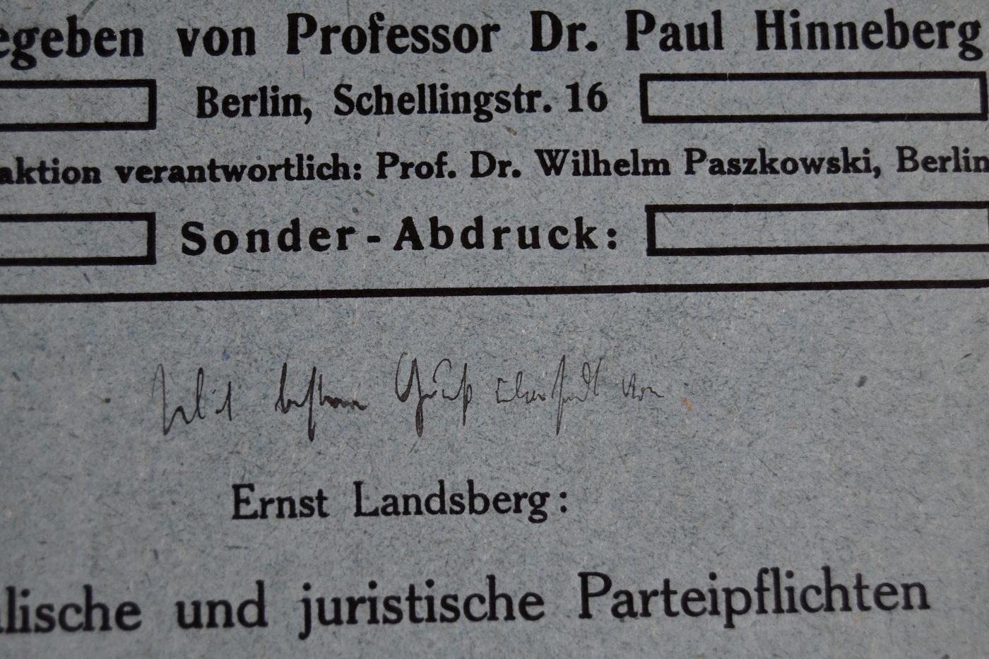 Beschreibung Einband berieben, bestoßen, gebräunt und mit Eckabriss. Handschriftlicher Besitzervermerk (Heinrich Gerland) und handschriftliche Widmung von Ernst LAndsberg auf dem Vorderdeckel. "Ernst Landsberg (* 12. Oktober 1860 in Stolberg (Rheinland); † 29. September 1927 in Bonn) war ein deutscher Jurist und Rechtshistoriker." (Wikipedia)