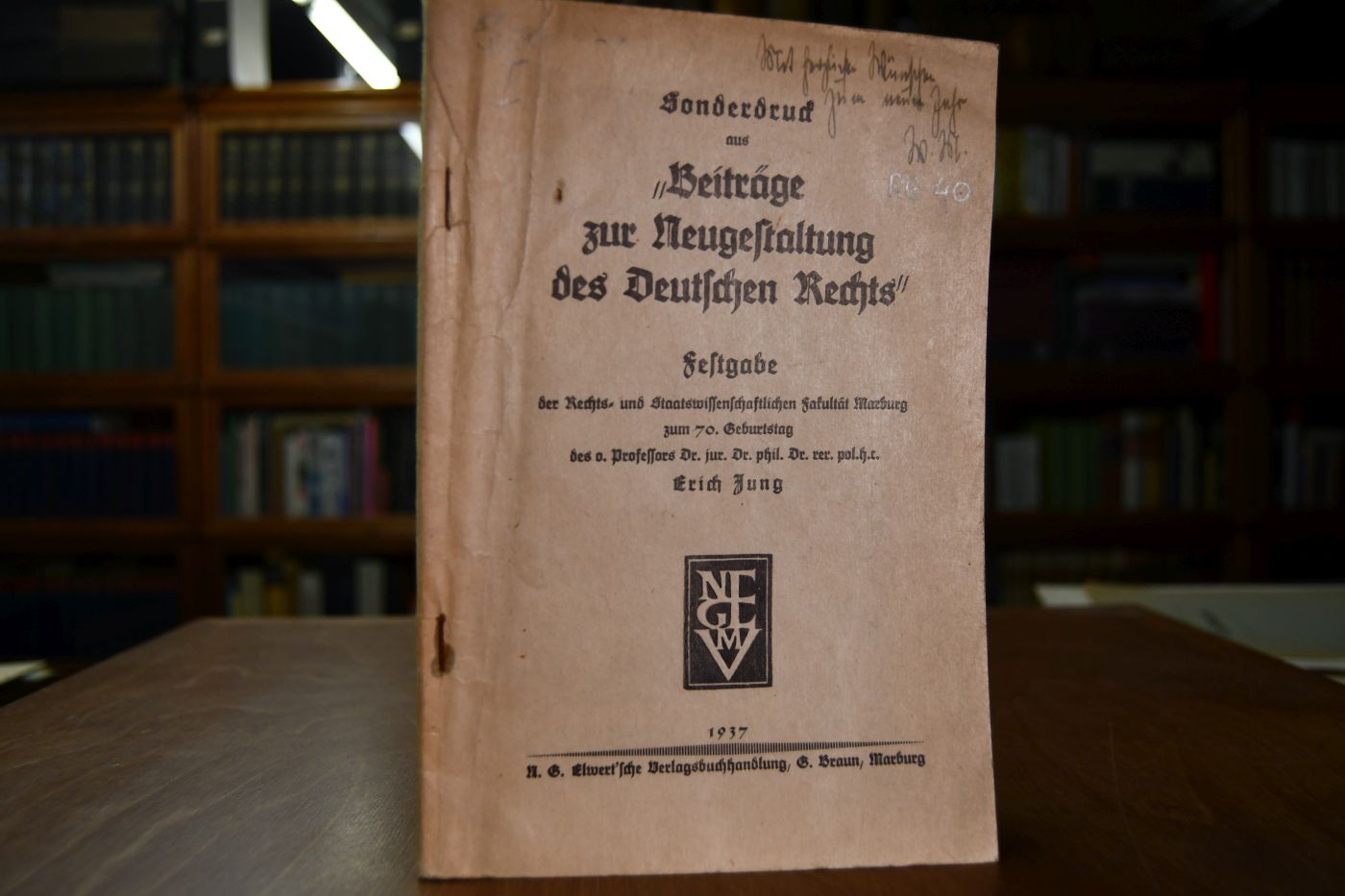 Sonderdruck aus: "Beiträge zur Neugestaltung des Deutschen Rechts" Festgabe der Rechts- und Staatswissenschaftlichen Fakultät Marburg zum 70. Geburtstag des o. Professors Erich Jung