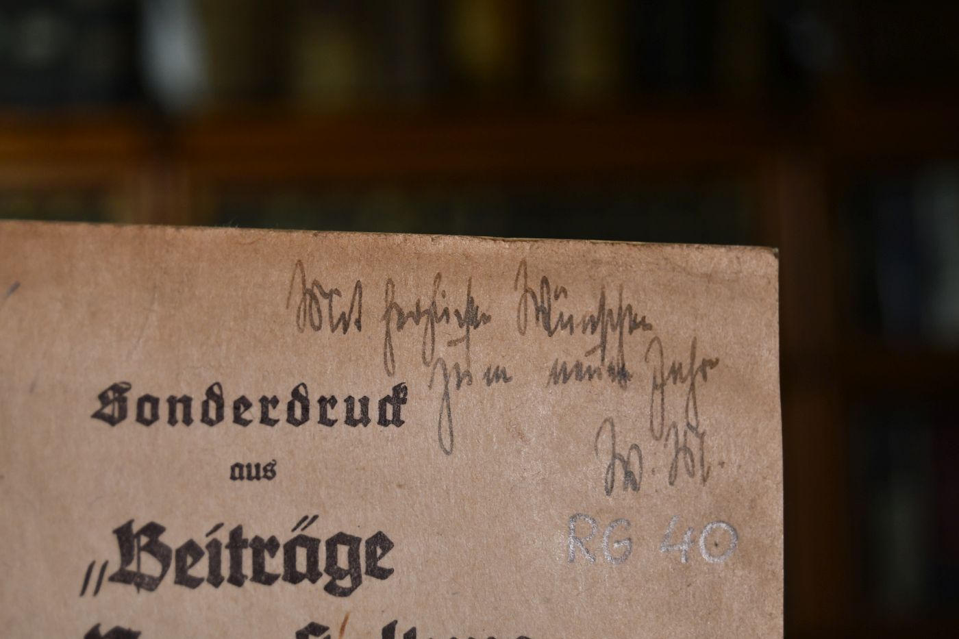 Beschreibung Einband berieben, bestoßen, gebräunt, knittrig und mit Spuren korrodierter Heftklammern. Mit handschriftlicher Widmung von Walter Merk auf dem Vorderdeckel.