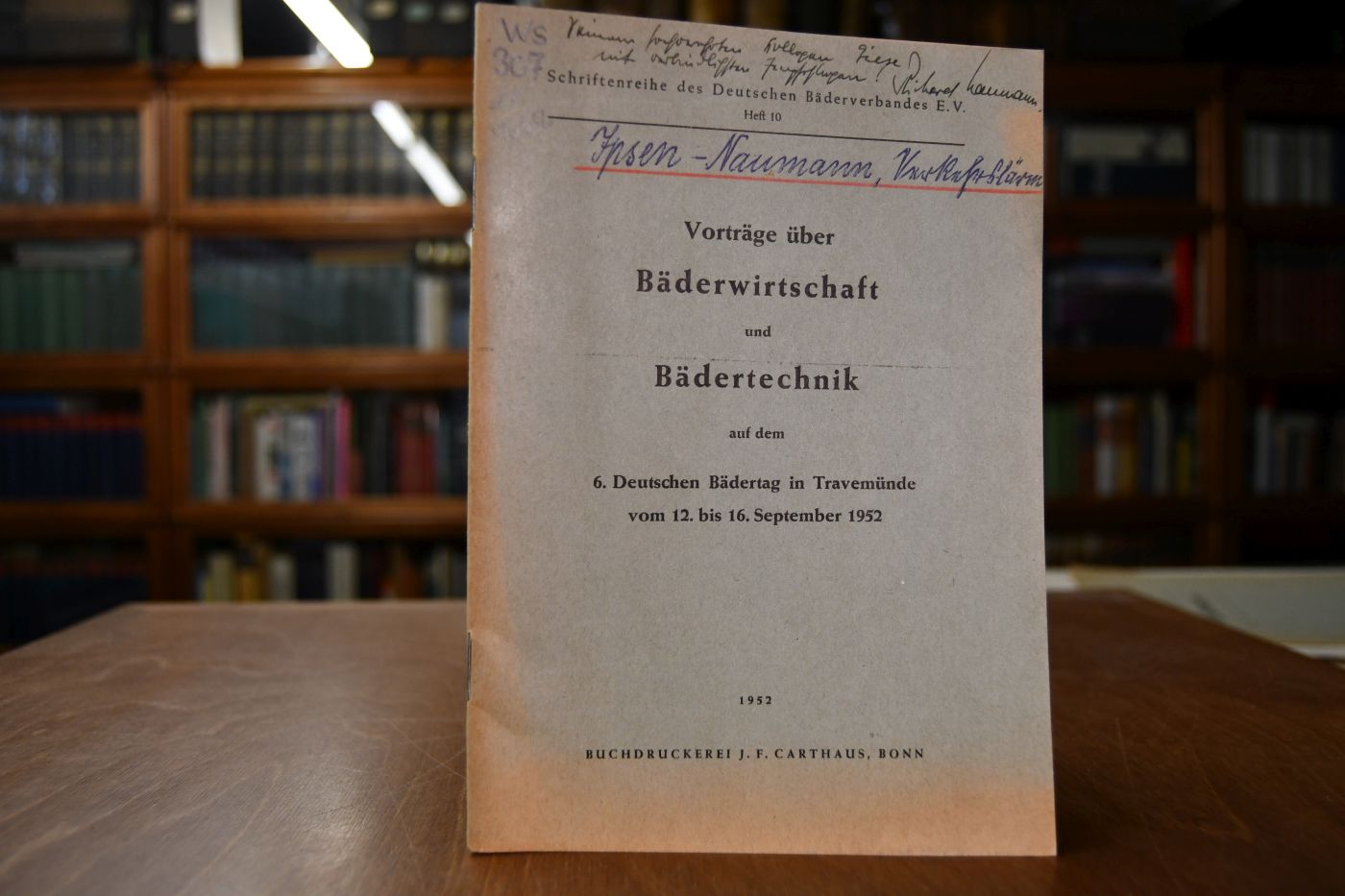 Vorträge über Bäderwirtschaft und Bädertechnik auf dem 6. Deutschen Bädertag in Travemünde vom 12. bis 16. September 1952.