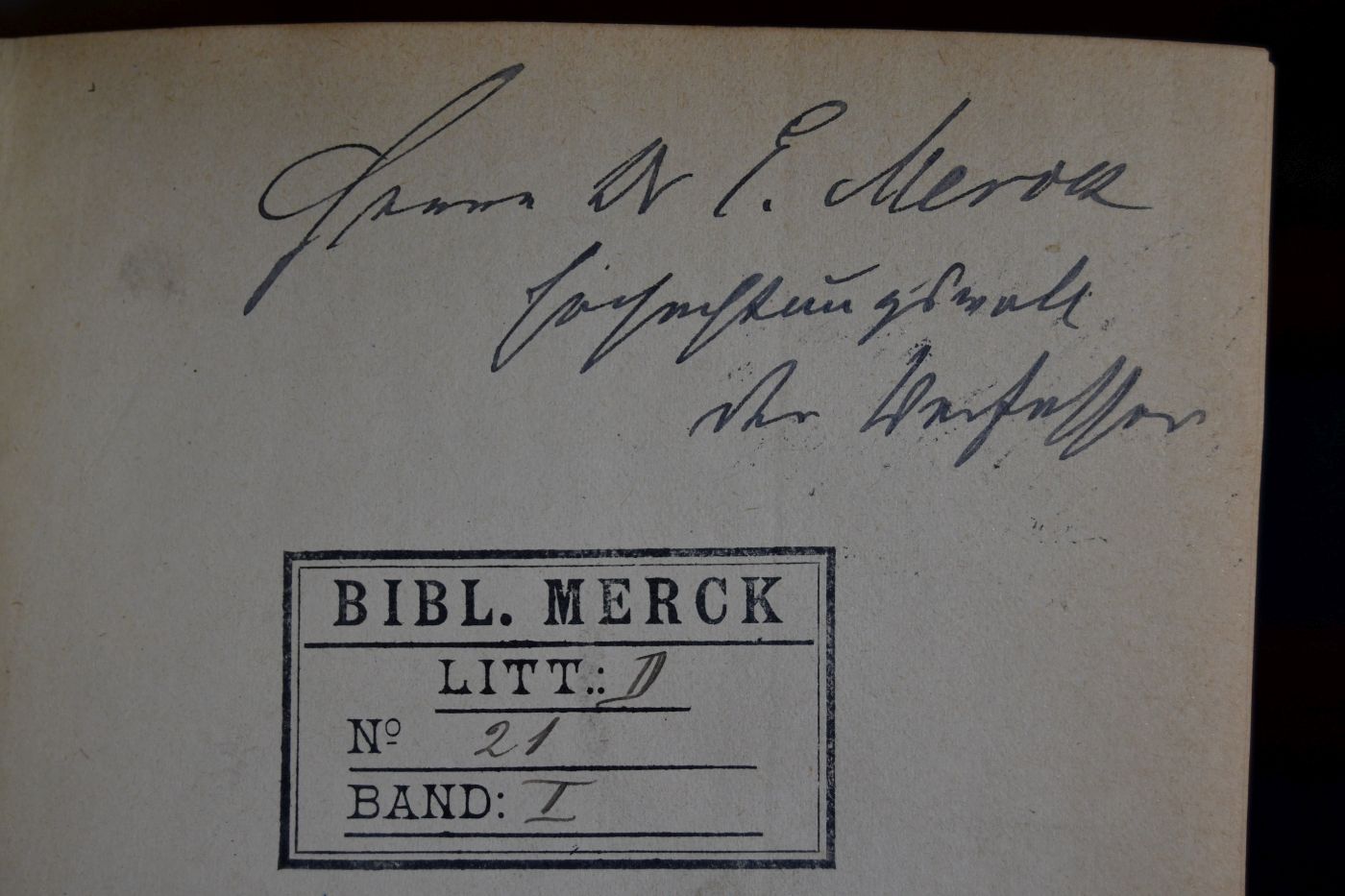 Beschreibung Einband berieben und bestoßen. Bibliotheksexemplar (Hauptbücherei E. Merck) mit den üblichen Stempeln, Eintragungen und Standortprägung. Handschriftliche Widmung des Verfassers an E. Merck auf dem fliegenden Vorsatz. Papierbedingt gebräunt.