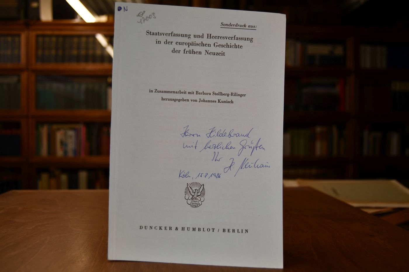 Sonderdruck aus: Staatsverfassung und Heeresverfassung in der europäischen Geschichte der frühen Neuzeit.