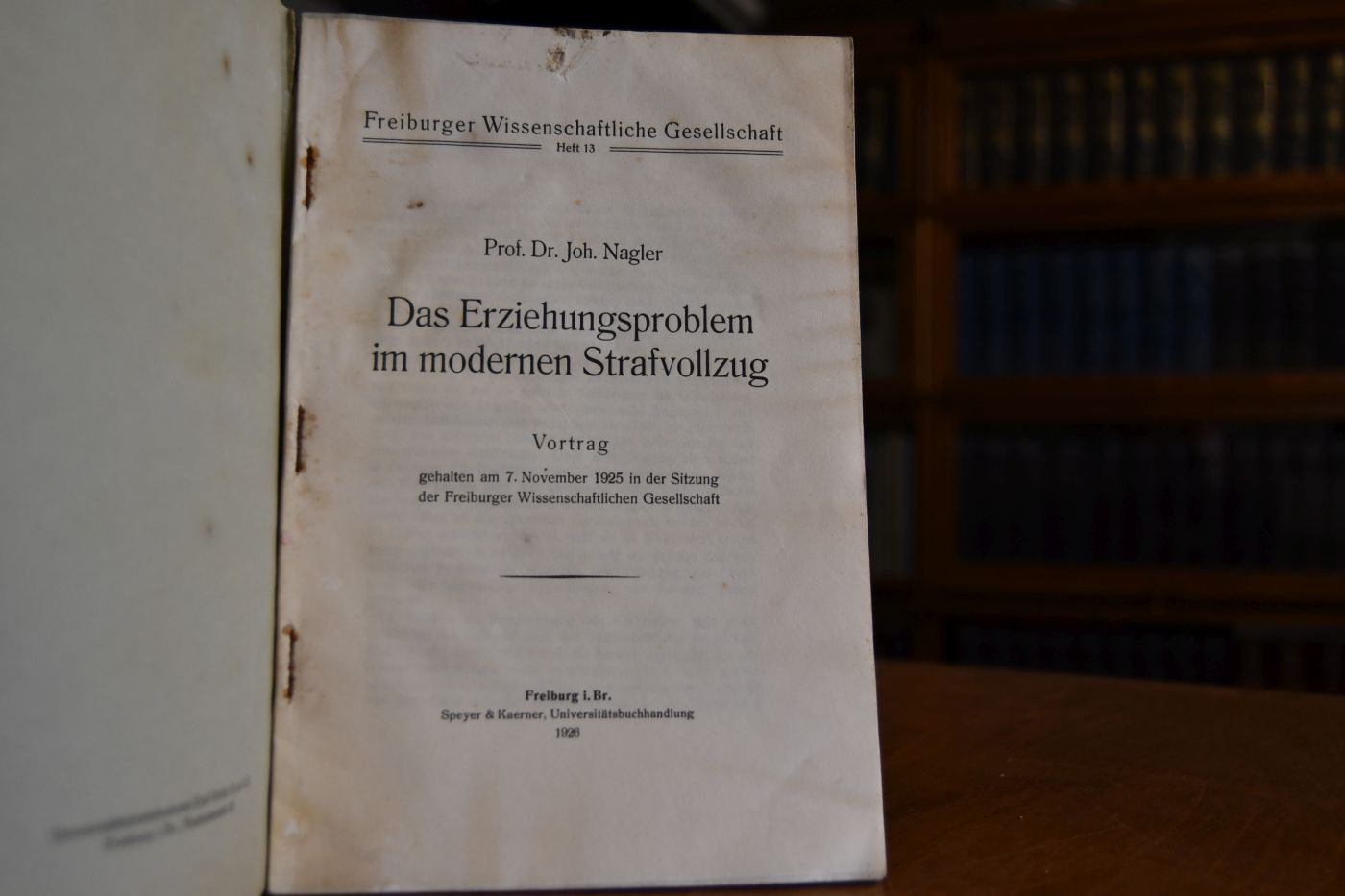Das Erziehungsproblem im modernen Strafvollzug. Vortrag gehalten am 7. November 1925 in der Sitzung der Freiburger Wissenschaftlichen Gesellschaft.