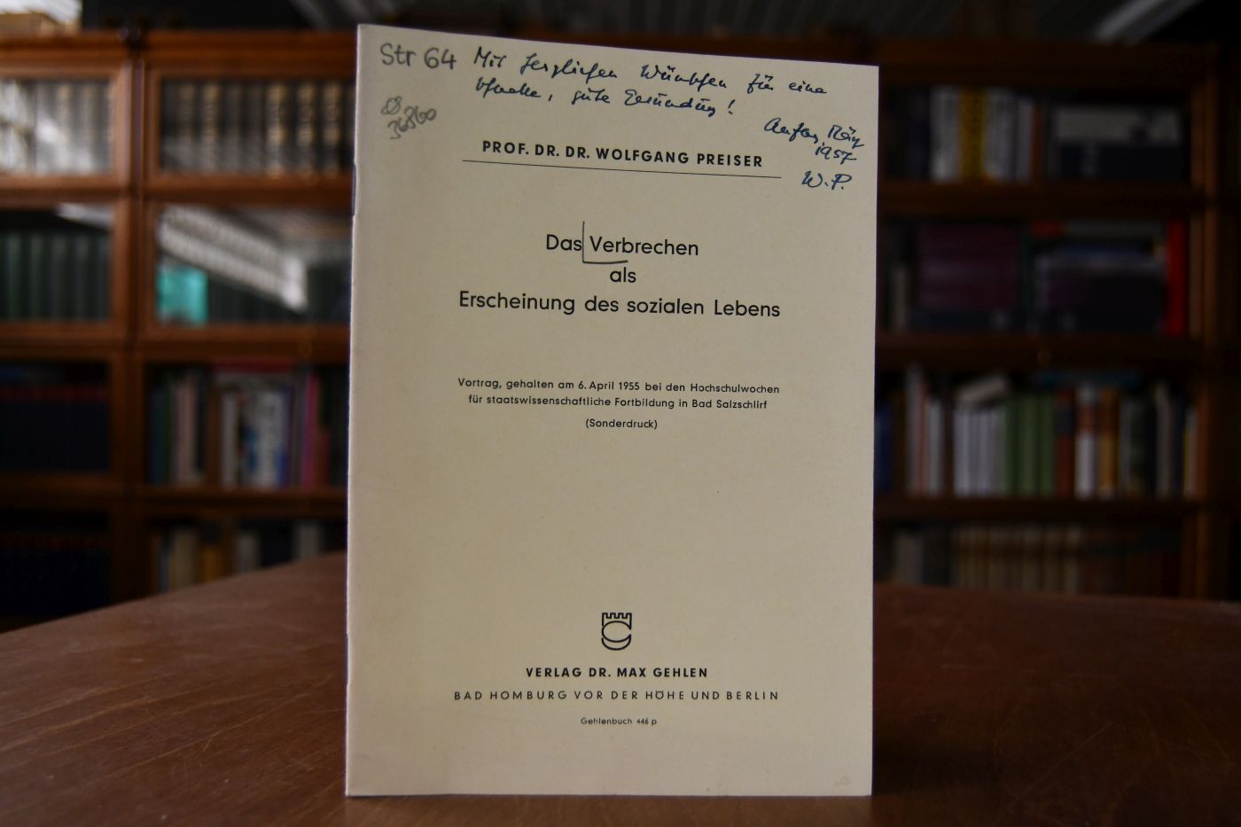 Beschreibung Einband berieben und angeschmutzt. Handschriftliche Widmung von Wolfgang Preiser auf dem Vorderdeckel. Wolfgang Preiser (* 20. Februar 1903 in Frankfurt am Main; † 31. Oktober 1997 ebenda) war ein deutscher Rechtswissenschaftler.