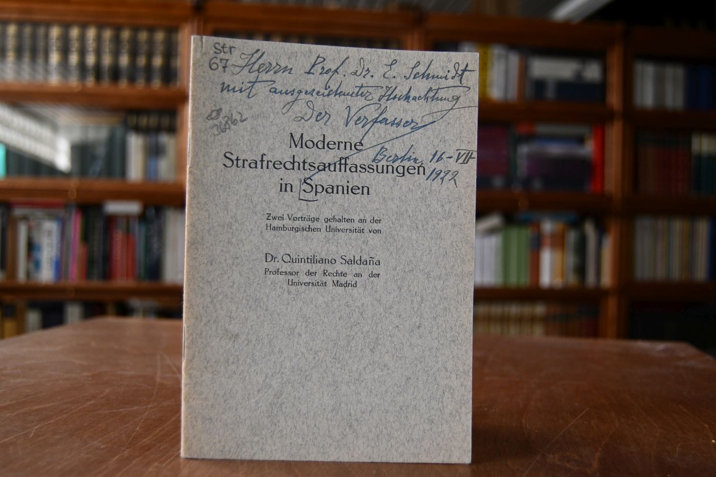 Beschreibung Einband berieben und gebräunt. Mit handschriftlicher Widmung von Quintiliano Saldana auf dem Vorderdeckel. "Quintiliano Saldaña y García-Rubio (* 13. April 1878 in Saldaña, Palencia; † 1938 in Madrid) war ein spanischer Jurist, Kriminologe und Soziologe." (Wikipedia)