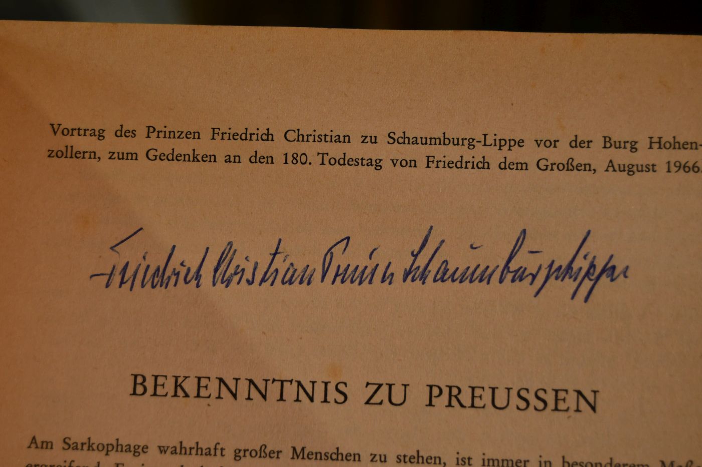 Bekenntnis zu Preußen. Festvortrag zum Gedenken an den 180. Todestag von Friedrich dem Grossen gehalten im Auftrage des Deutschen Kulturwerkes Europäischen Geistes vor dem Arbeitskreis volkstreuer Verbände.