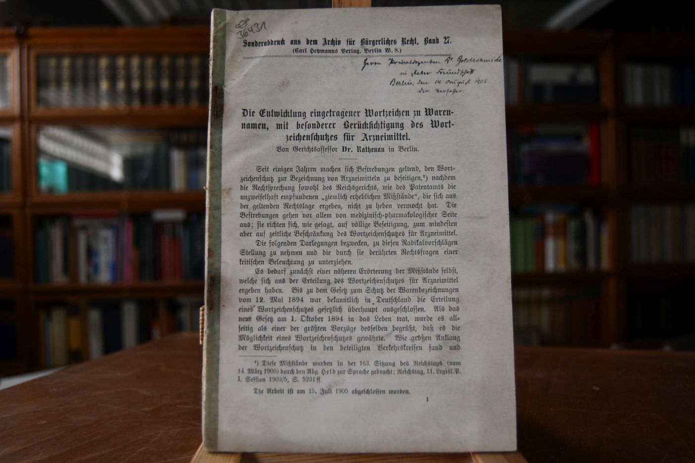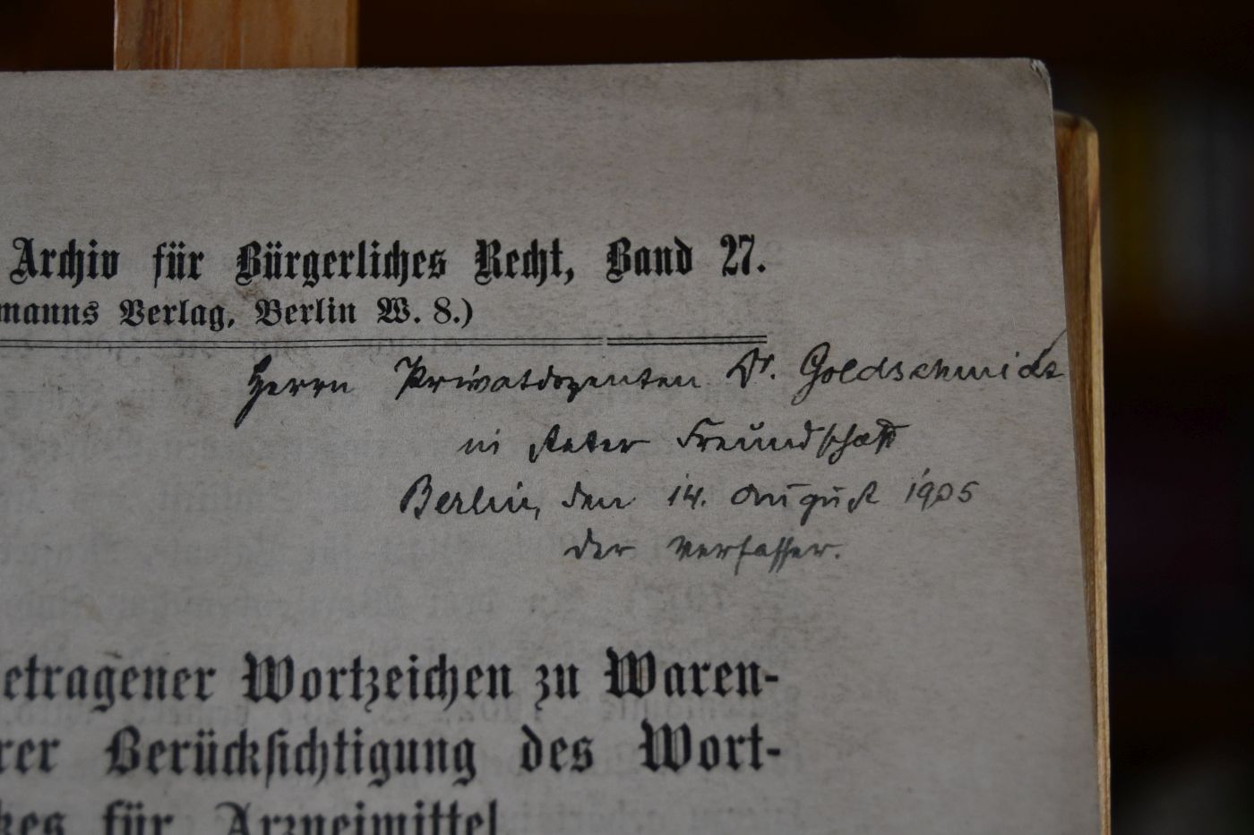 Sonderabdruck aus dem Archiv für Bürgerliches Recht, Band 27.