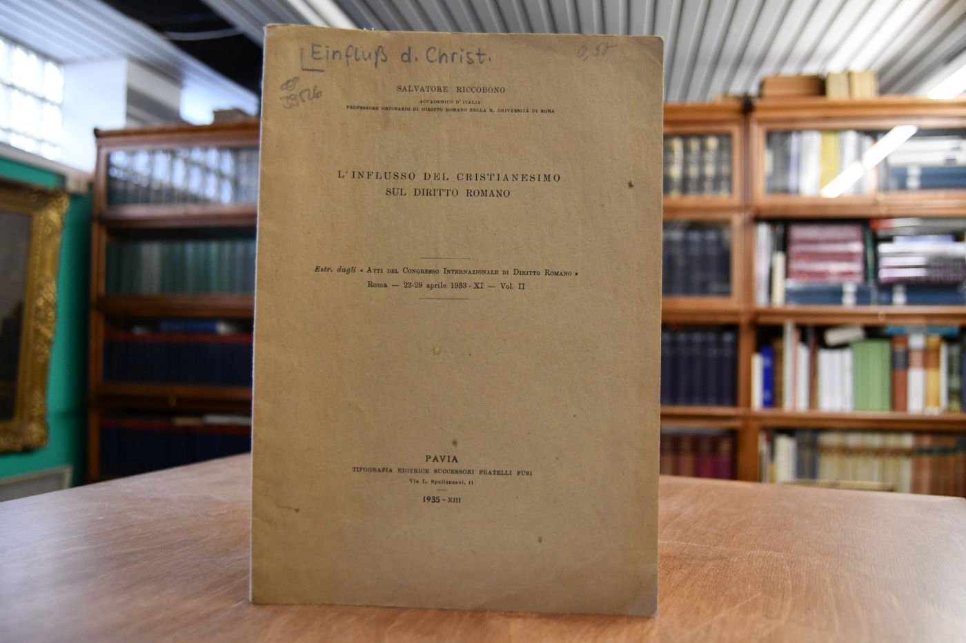 Beschreibung Einband berieben, bestoßen, angeschmutzt und fleckig. Mit handschriftlicher Widmung von Salvarore Riccobono auf dem fliegenden Vorsatz.