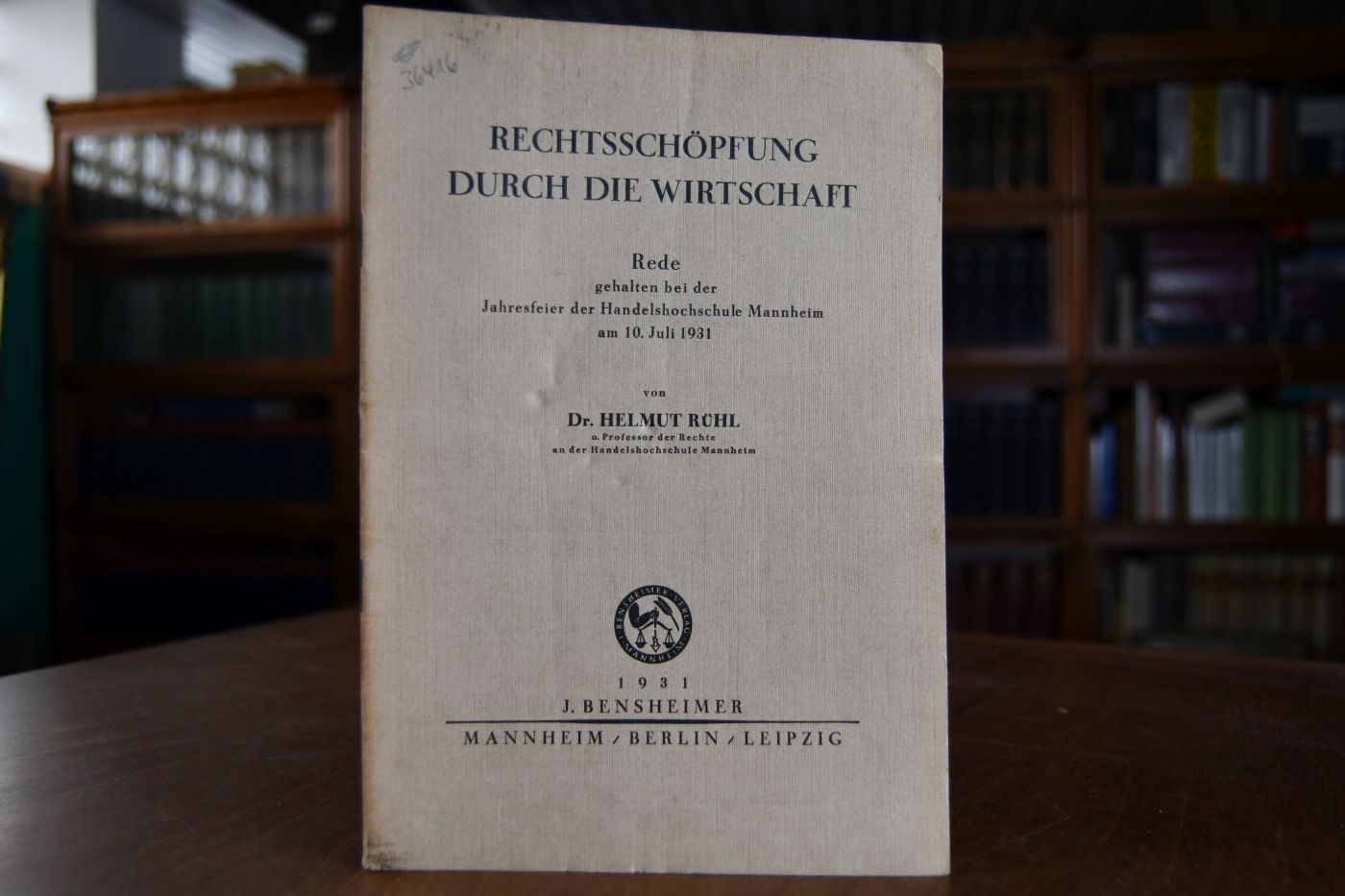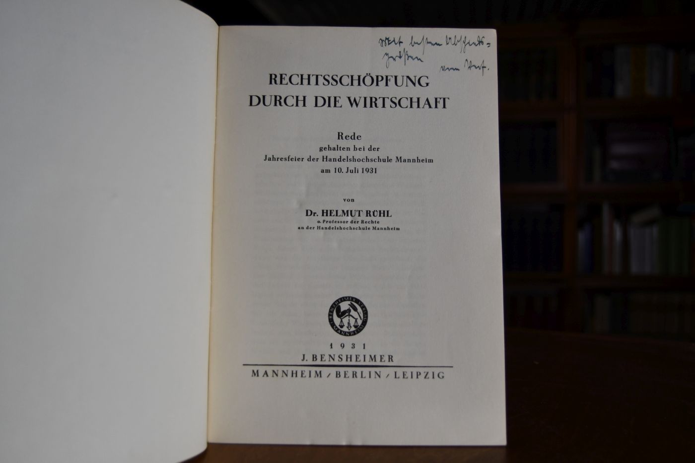 Rechtschöpfung durch die Wirtschaft. Rede gehalten bei der Jahresfeier der Handelsschule Mannheim am 10. Juli 1931.