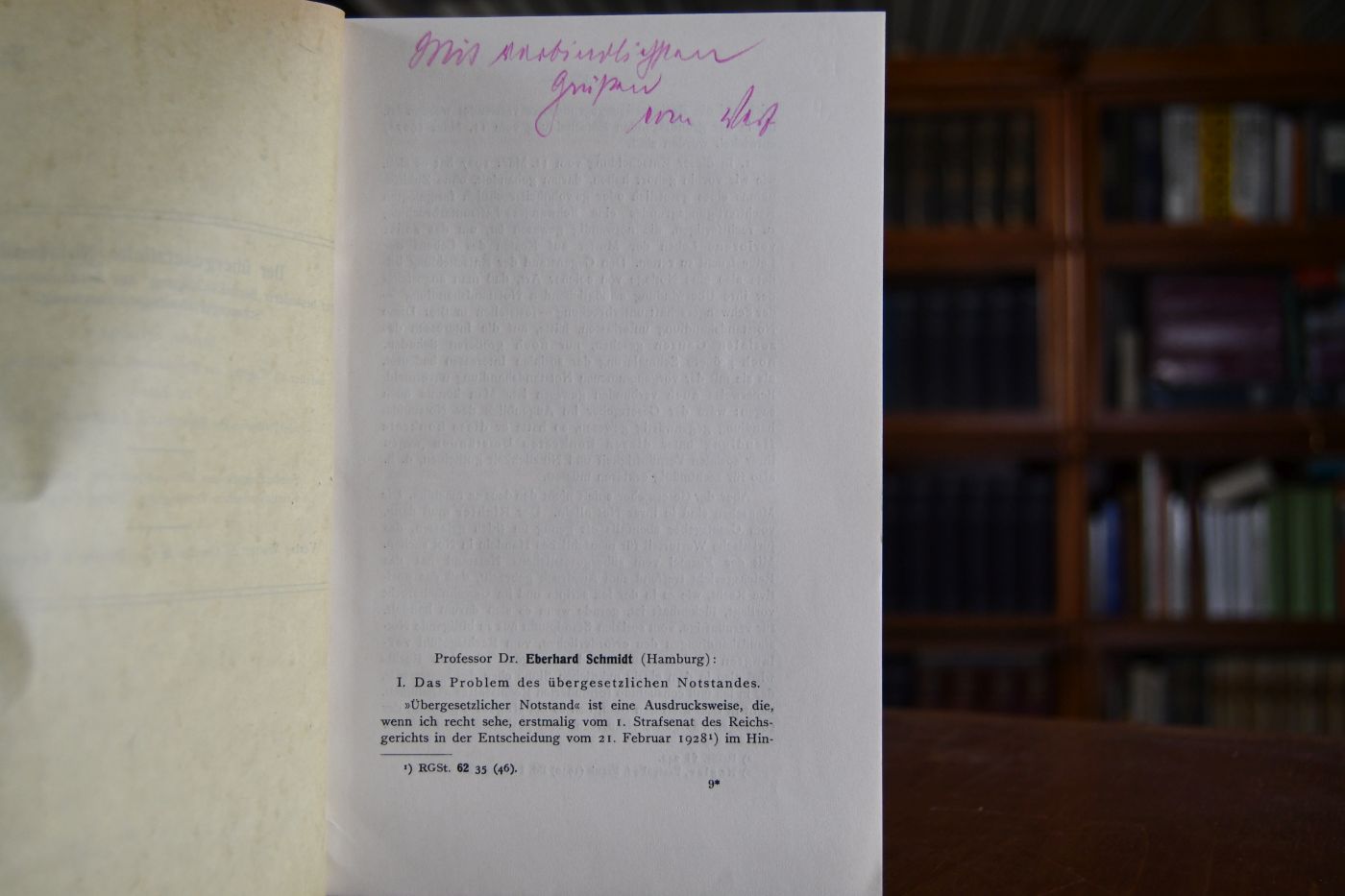 Beschreibung Einband berieben. Handschriftliche Ordnungsnummer auf dem Vorderdeckel. Innen sauber. Mit handschriftlicher Widmung auf dem Titel. "Eberhard Ludwig Ferdinand Schmidt (* 16. März 1891 in Jüterbog; † 17. Juni 1977 in Heidelberg) war ein deutscher Rechtswissenschaftler und Professor für Strafrecht und Strafprozessrecht." (Wikipedia)