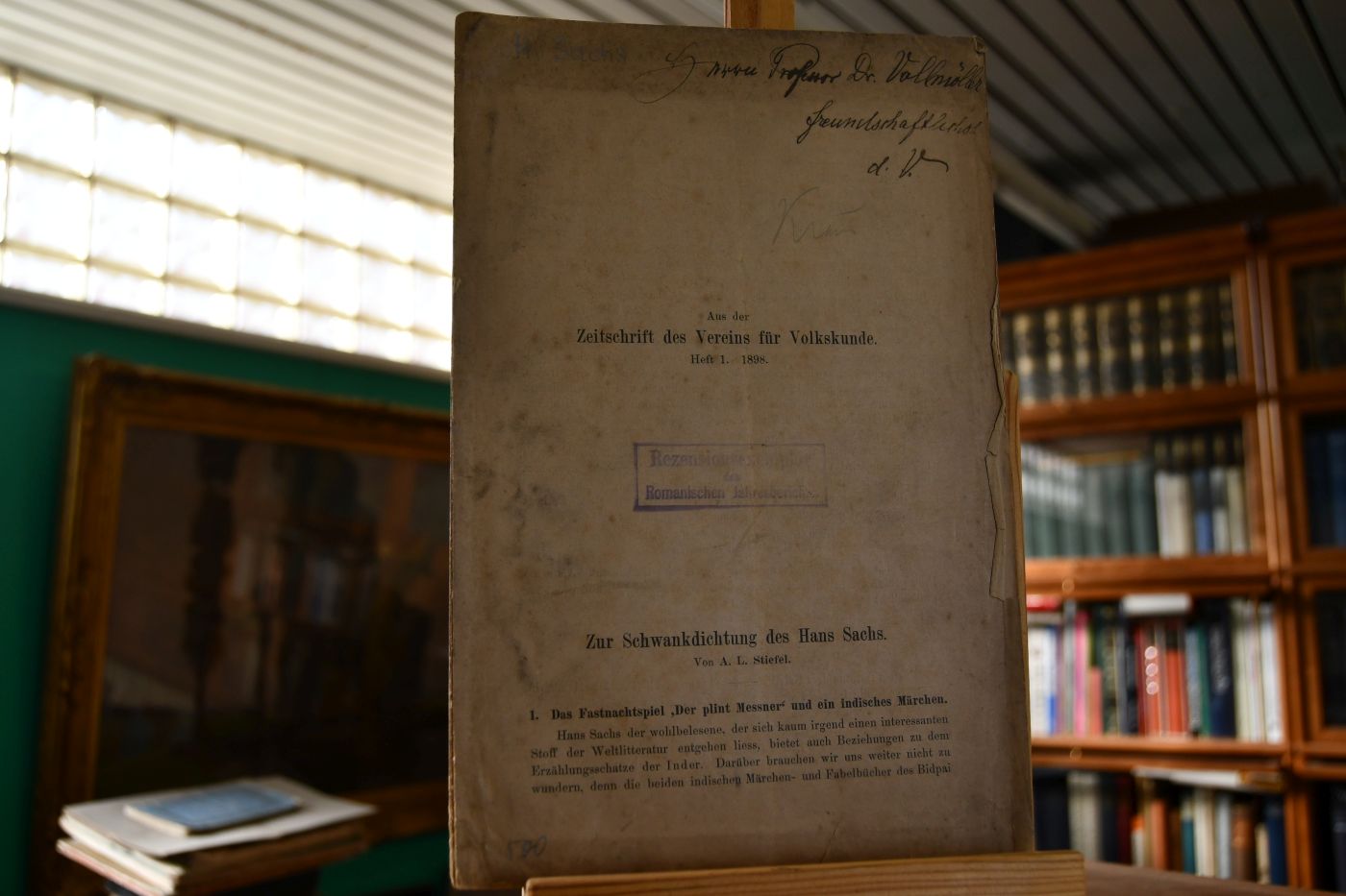 Beschreibung Einband berieben, bestoßen, angeschmutzt und fleckig. Rücken geöffnet. Deckel quetschfaltig und mit Einrissen. HAndschriftliche Widmung von Arthur Ludwig Stiefel an Professor Dr. [Karl] Vollmöller auf dem Vorderdeckel.