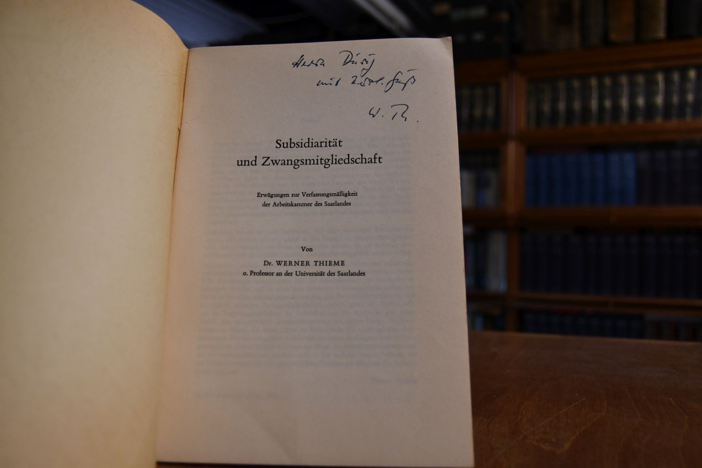 Beschreibung Einband berieben, gebräunt, angeschmutzt und mit Einrissen. Eselsohrig. Mit handschriftlicher Widmung von Werner Thieme an Günter Dürig auf dem Titel. Von Günter Dürig durchgearbeitet mit An- und Unterstreichungen sowie wenigen Marginalien.