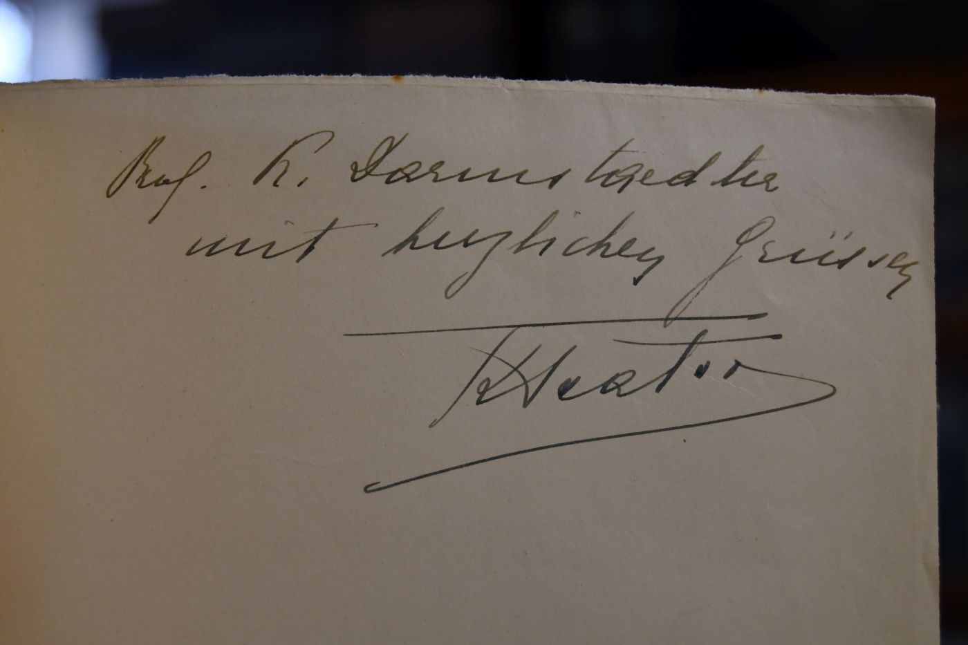 Beschreibung Einband berieben, bestoßen und gebräunt. Mit Anschmutzungen und Randeinrissen an den unbeschniuttenen Seitenrändern. Mit handschriftlicher Widmung von Konstantin Tsatsos an Friedrich Darmstaedter auf dem Schmutztitel.