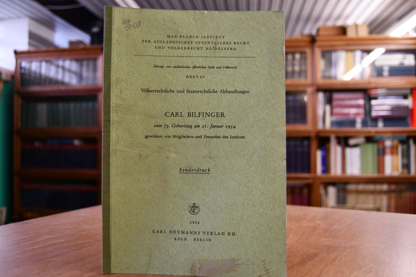 Sonderdruck aus: Beiträge zum ausländischen öffentlichen Recht und Völkerrecht, Heft 29, Völkerrechtliche und staatsrechtliche Abhandlungen. Carl Bilfinger zum 75. Geburtstag am 21. Januar 1954.