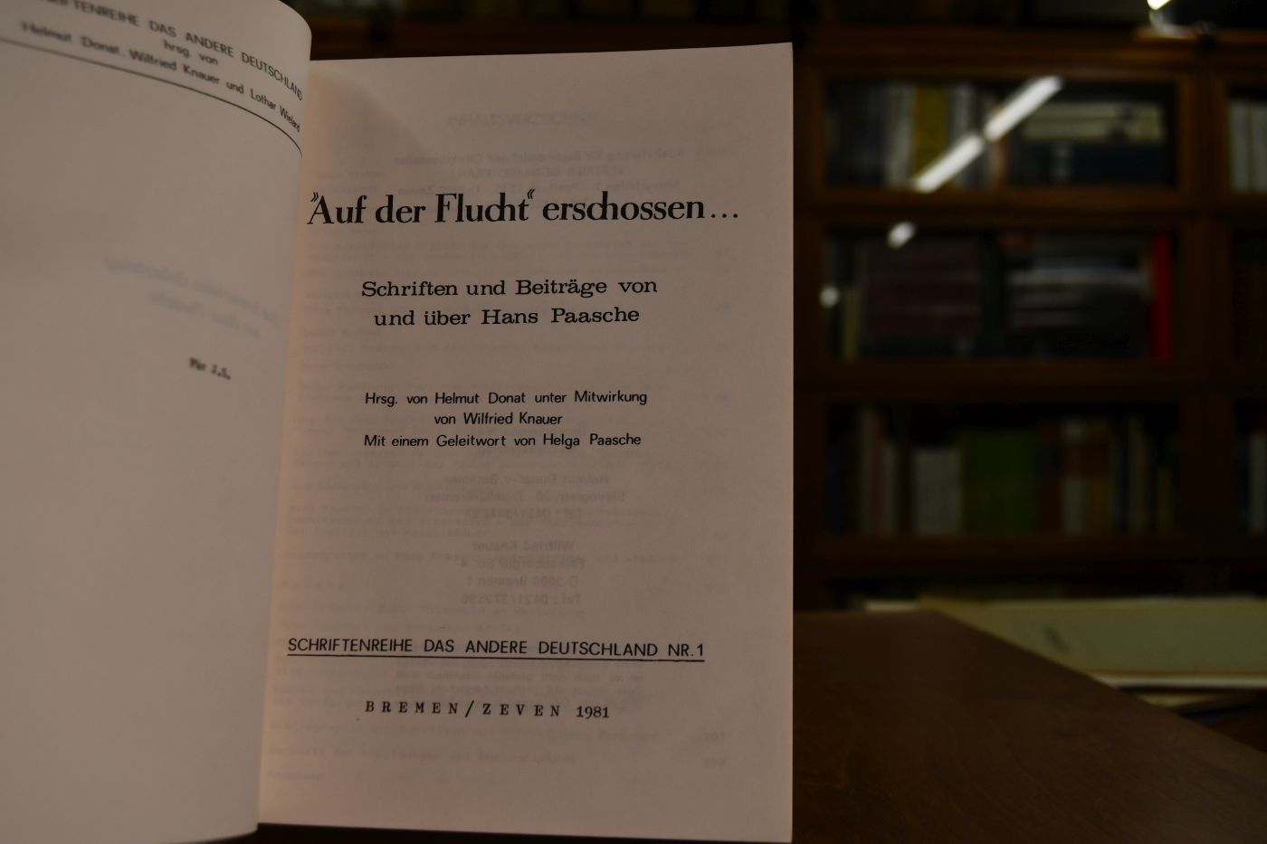 "Auf der Flucht" erschossen ... Schriften und Beiträge von und über Hans Paasche.