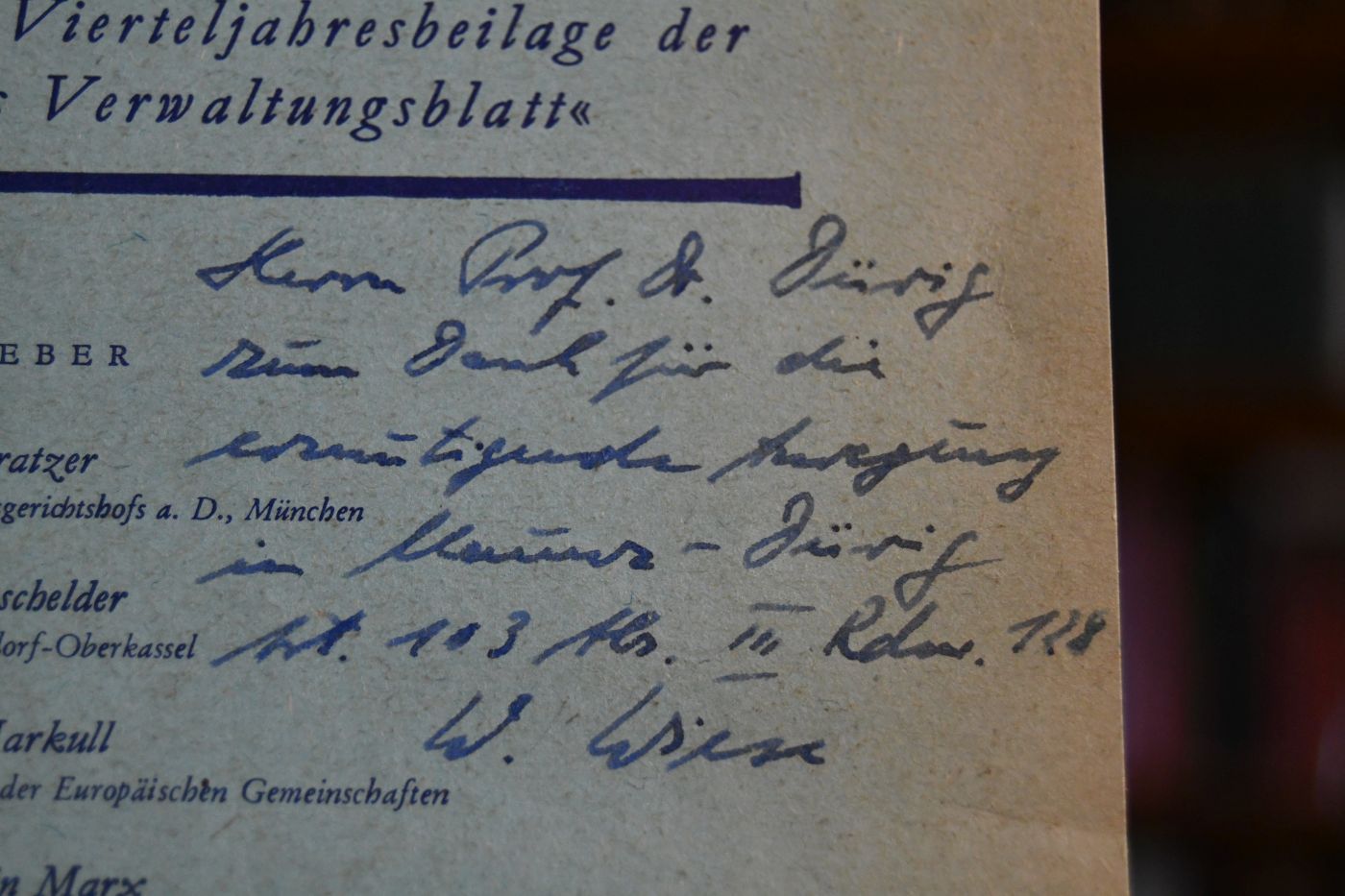 Beschreibung Einband berieben und gebräunt. Mit handschriftlicher Widmung von Walter Wiese an Günter Dürig und dessen handschriftlicher Notiz auf dem Vorderdeckel.