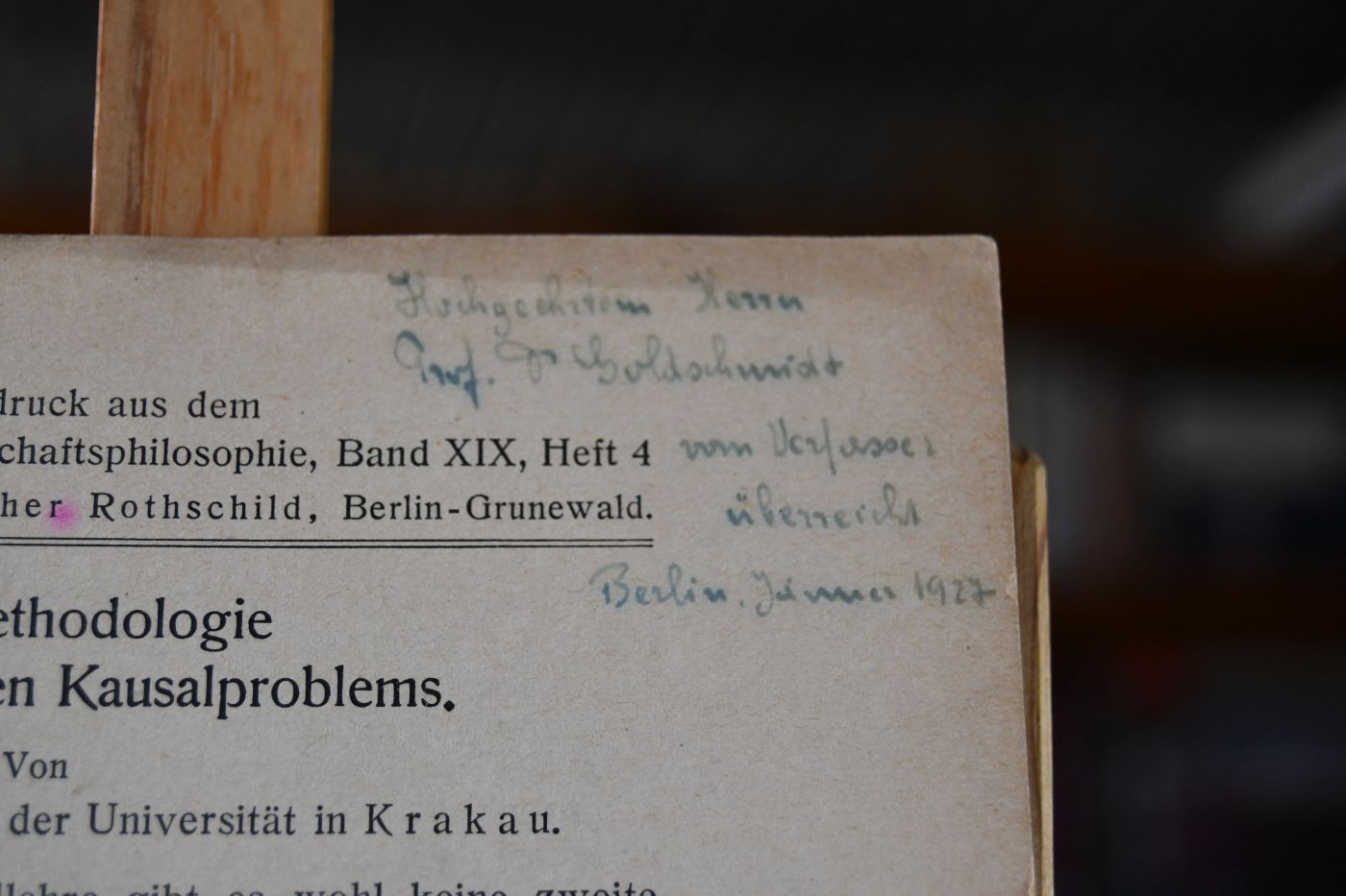 Beschreibung Einband berieben, bestoßen, angeschmutzt und fleckig. Kleine Randeinrisse. Korrodierte Heftklammern. Handschriftliche Widmung des Verfassers an Prof. James Goldschmidt auf der ersten Seite.