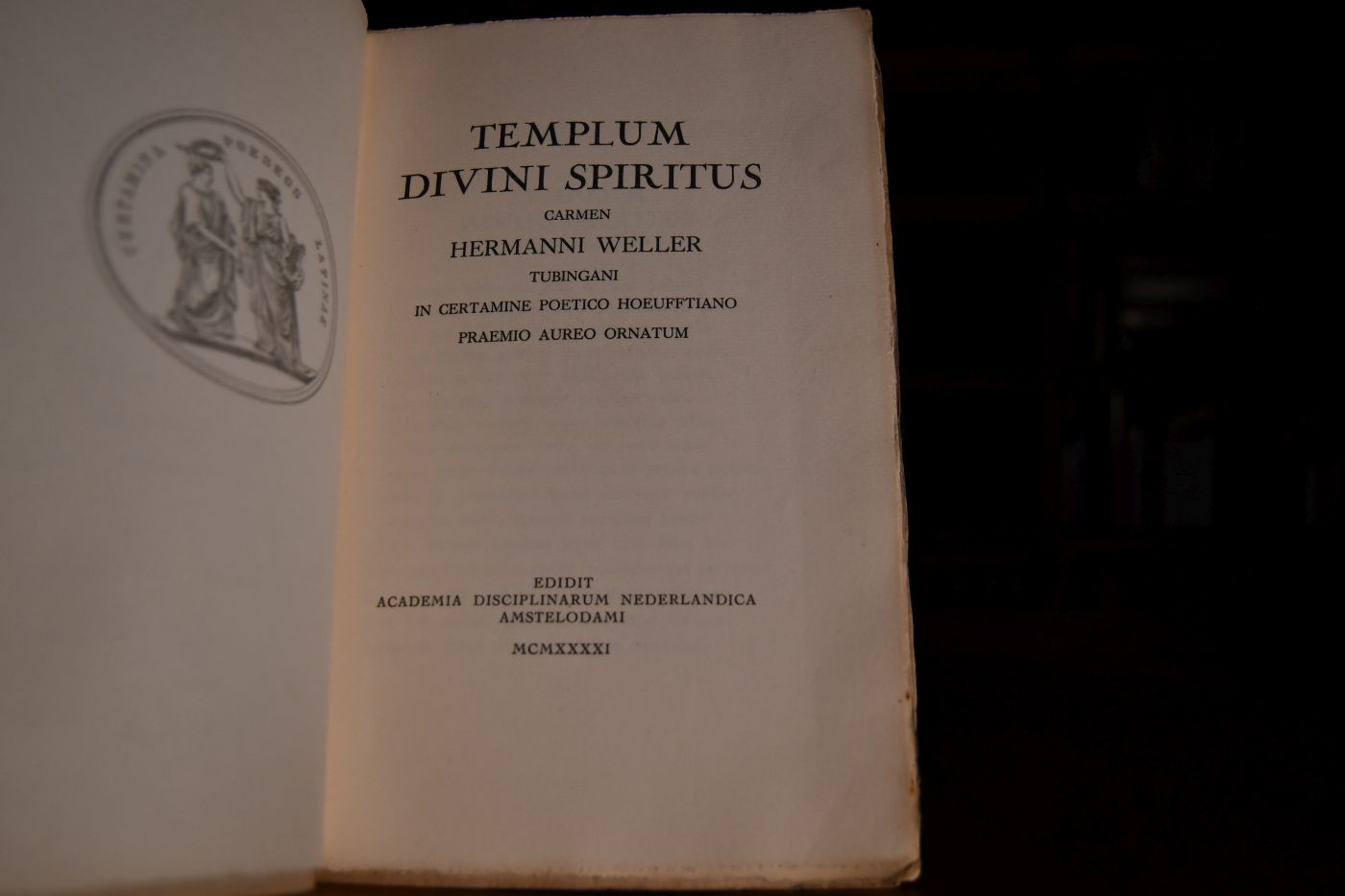 Templum divini spiritus. Carmen Hermanni Weller Tubingani in certamine poetico Hoeufftiano praemio aureo ornatum.