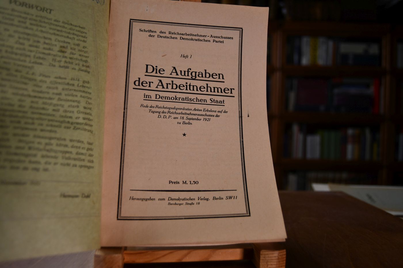 Die Aufgaben der Arbeitnehmer im Demokratischen Staat. Rede des Reichstagsabgeordneten Anton Erkelenz auf der Tagung des Reichsarbeitnehmerausschusses der D.D.P. am 18. September 1921 zu Berlin.