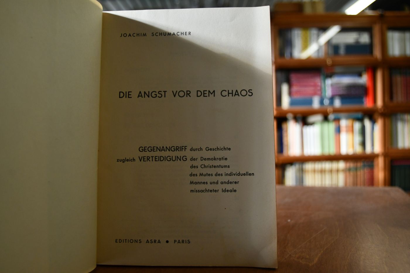 Die Angst vor dem Chaos. Gegenangriff durch Geschichte zugleich Verteidigung der Demokratie des Christentums des Mutes des individuellen Mannes und anderer missachteter Ideale.