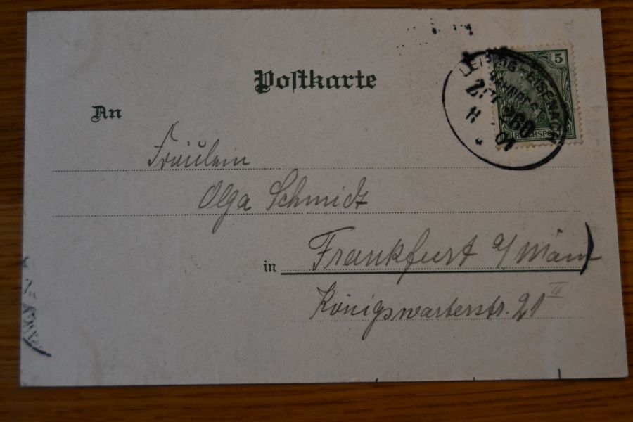 Beschreibung Karte mit Spuren eines Einsteckalbums an den Ecken. Karte gelaufen. Aufgabestempel Bahnpost Leipzig-Eisenach Zug 260 11.?.1901.