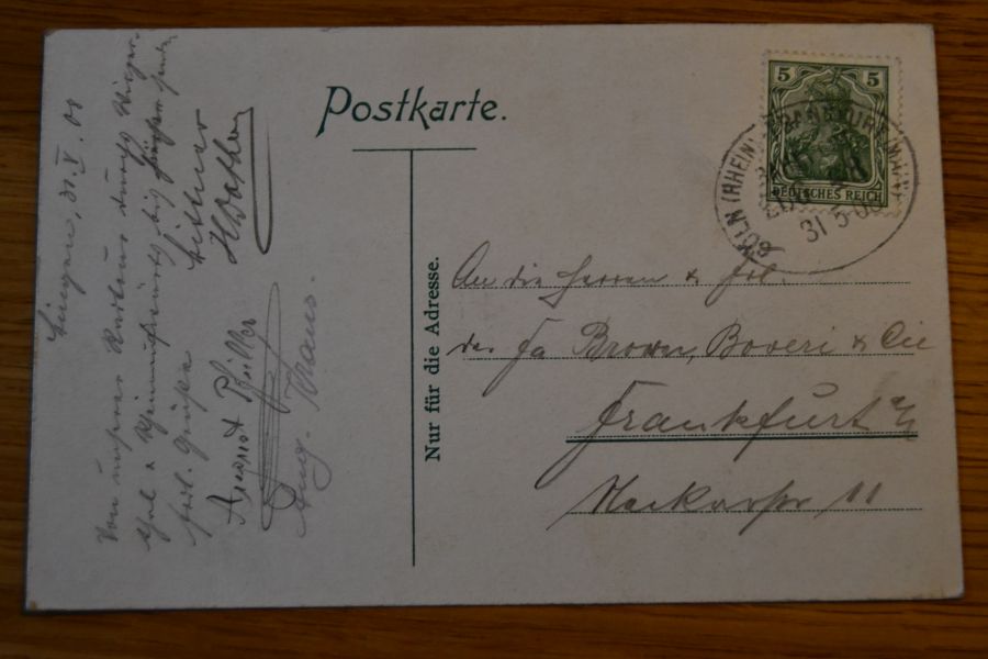 Beschreibung Karte mit Spuren eines Einsteckalbums an den Ecken. Karte gelaufen. Aufgabestempel: Bahnpst Cöln (Rhein) - Frankfurt (Main) Zug 48 31.5.1908.