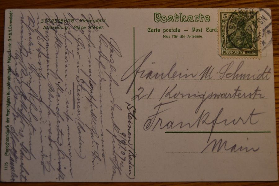 Beschreibung Karte mit Spuren eines Einsteckalbums an den Ecken. Karte gelaufen. Aufgabestempel Steinen (Baden) 9.9.1907.