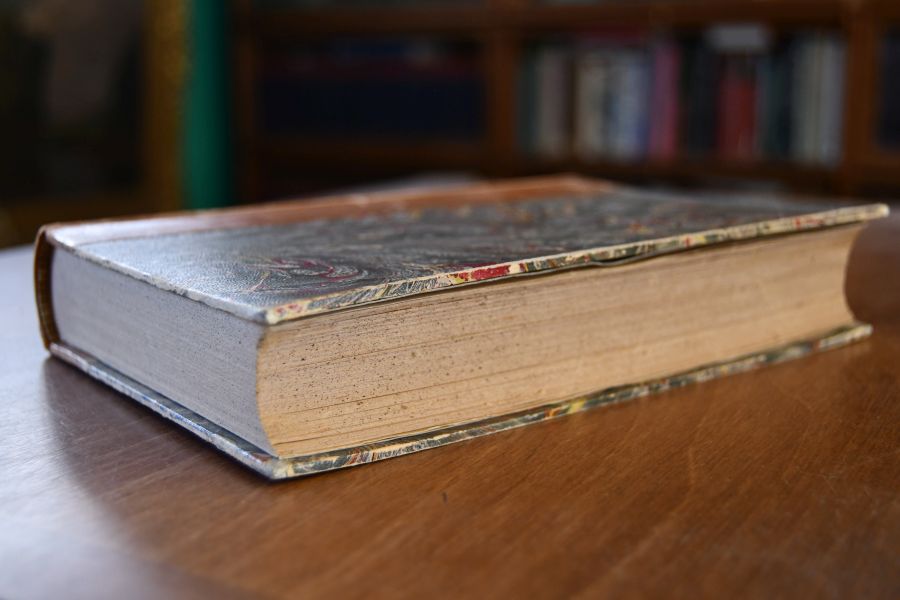 Format 21 x 15 cm, Halbleder mit 4 Bünden und Rückenschild