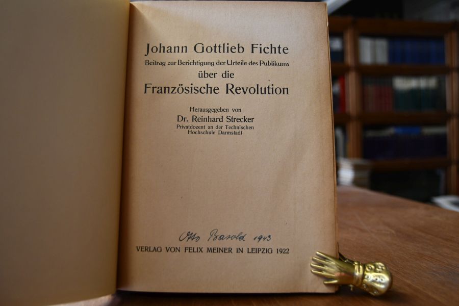 Johann Gottlieb Fichte. Beitrag zur Bericvhtigung der Urteile des Publikums über die Französische Revolution.