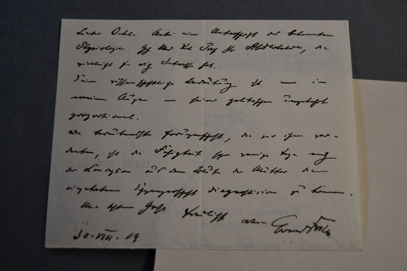 Maschinenschriftlicher, unterschriebener Brief des Schweizer Physiologen, Mitbegründers der Proteinbiochemie, Präsidenten der Leopoldina, Professor in Halle und Zürich Emil Abderhalden (1877-1950) vom 21. August 1919.