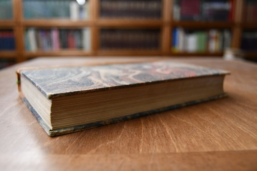 Format 20 x 15 cm, Halbleder mit 4 Bünden, Rückenvergoldung und Kopfgoldschnitt