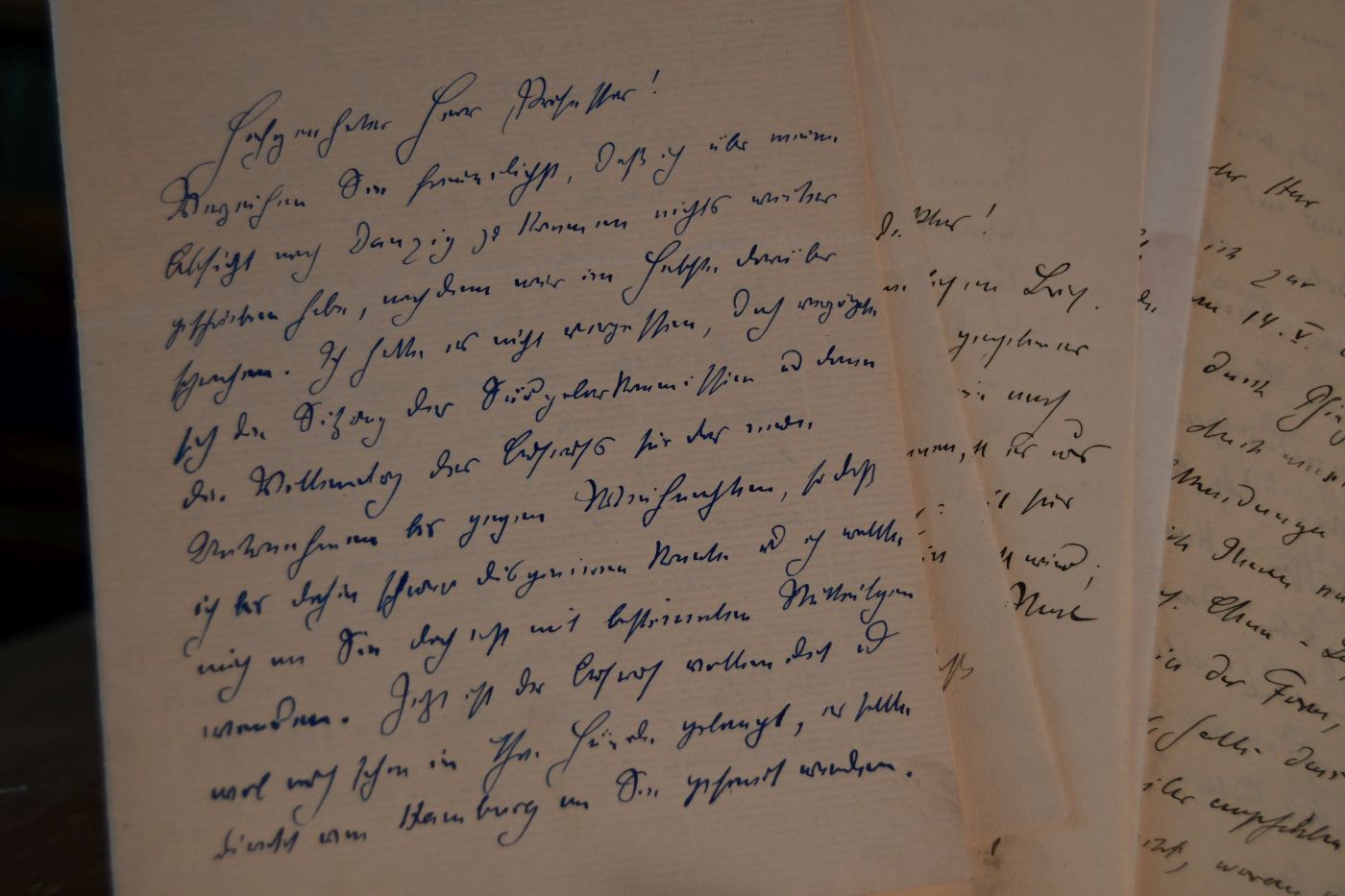 Beschreibung Handschriftliche Briefe vom 21.1.1896. 3.1.1898, 5.2.1899, 5.3.1899, 27.5.1899, 13.11.1899, 19.2.1907, 29.5.1907, 18.8.1907 (gelocht), 7.6.1907 (oberes Drittel fast abgerissen). Beschriebene Visitenkarte vom 24.2.1925.