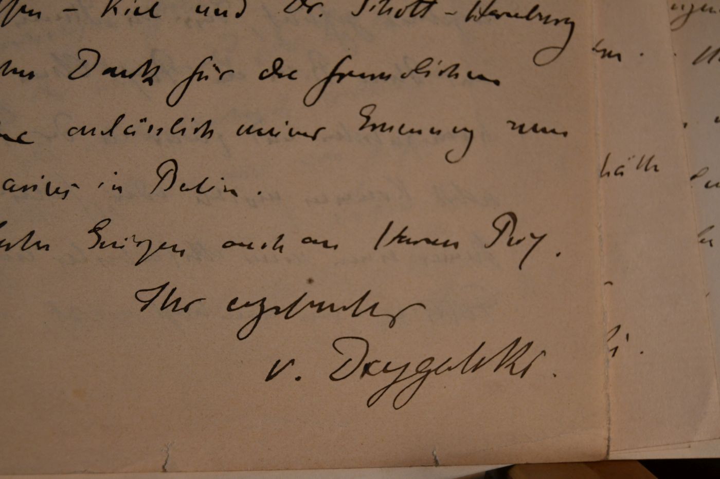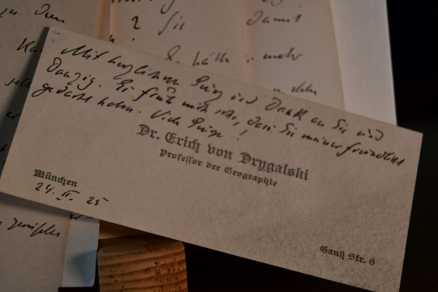 10 handschriftliche Briefe und eine beschriebene Visitenkarte des deutschen Geographen, Geophysikers und Polarforschers Erich von Drygalski (1865-1949) vom Januar 1896 - Februar 1925 an den Danziger Lehrer und Botaniker Konrad Lakowitz (1859-1945).