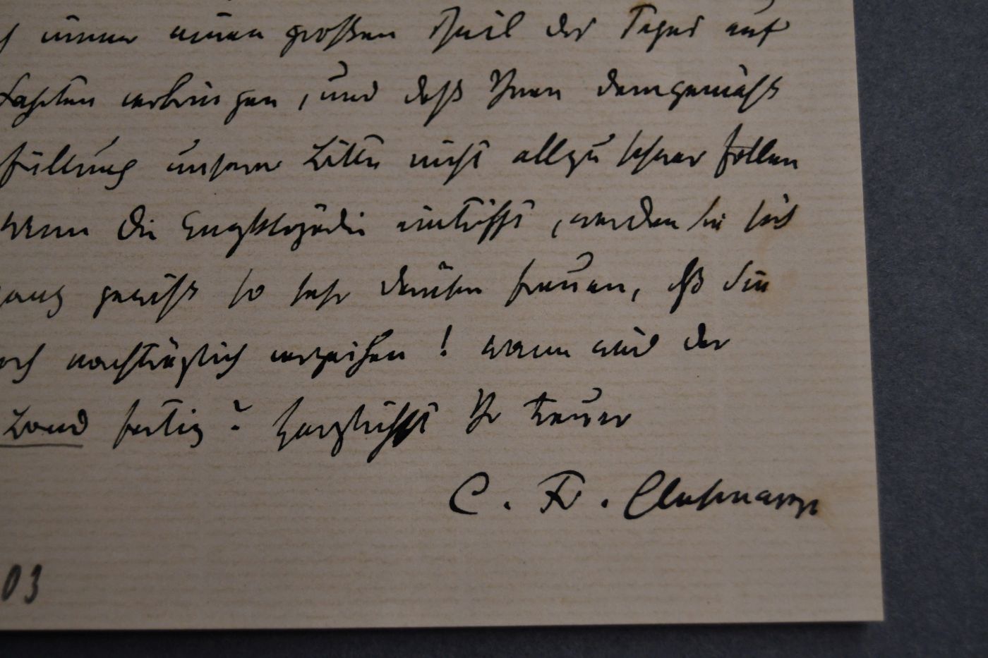 Beschreibung Einseitiger Brief mit durchgehendem Querfalz. Es handelt sich um ein Begleitschreiben zu einem weiteren, nicht vorhandenen Brief. Angekündigt wird die bald eintraffende (Wagner-) Enzyklopädie.