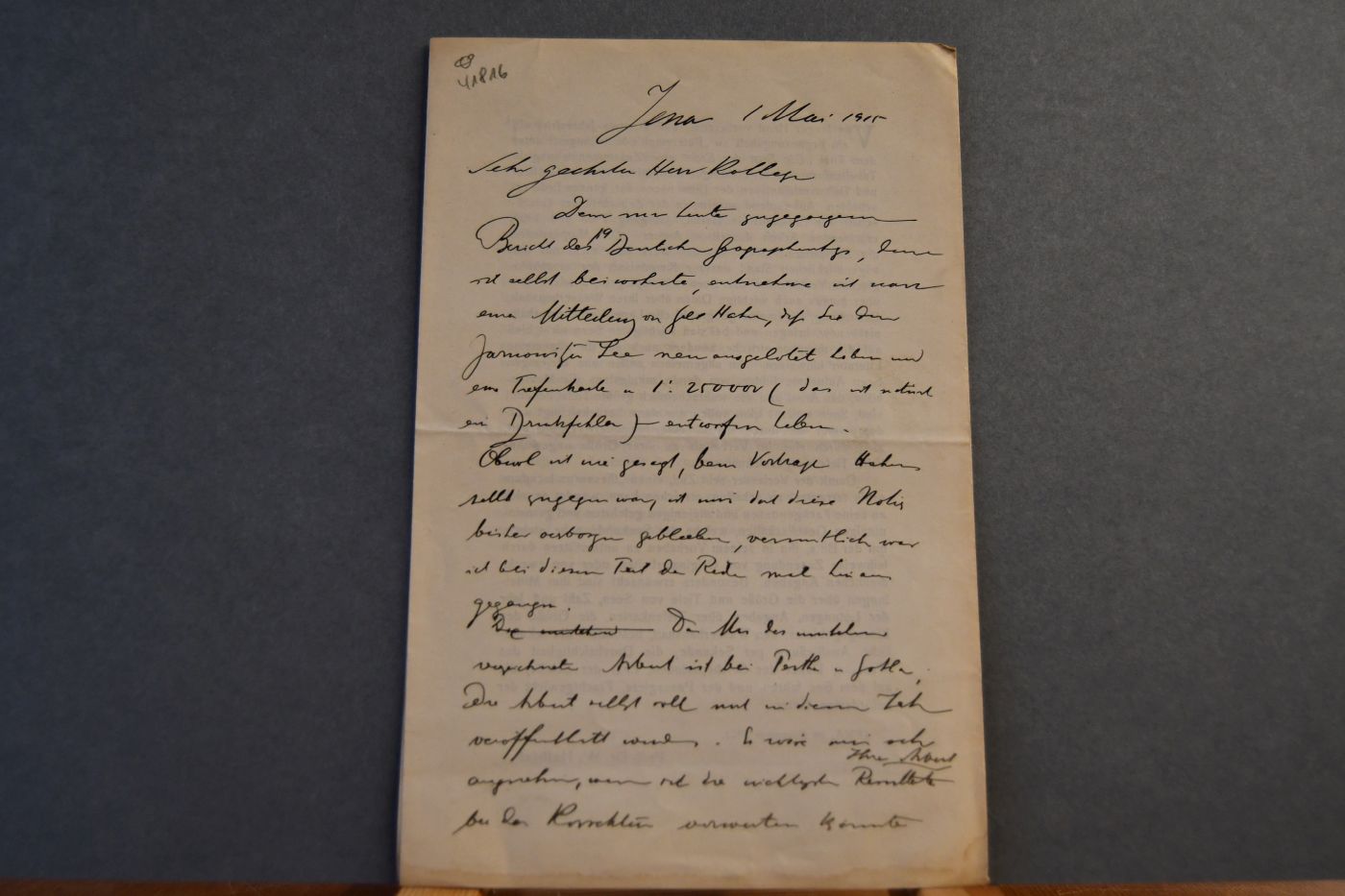 Handschriftliches Schreiben von Wilhelm Halbfaß, Hydrogeograph (1856-1951) vom 1. Mai 1915 an den Danziger Lehrer und Botaniker Konrad Lakowitz (1859-1938).